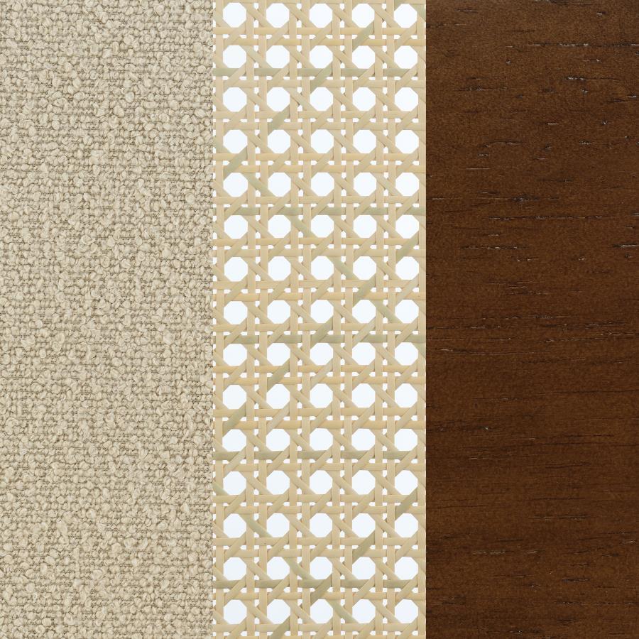 This accent chairs introduces a warm, airy presence to any living area. Lounge chair features a rattan open cane webbing back that breathes natural style and a fabric upholstered cushioned seat for soft, supportive comfort. The solid hardwood frame provides timeless stability. Ideal as occasional chair for reading nooks or side chair in conversation areas, this piece blend casual elegance with functional seating.