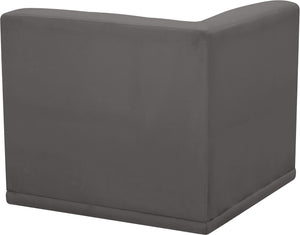 Bolster a contemporary vibe in your living room with this Relax velvet corner chair. Soft black velvet upholstery offers delicate comfort, making this chair cozy for anyone who sits in it. Biscuit tufting gives this chair texture and a modern style, adding extra comfort and elegance to your living space. It s modular design allows you to create infinite configurations, making it a versatile piece to add to your home. A latch underneath the chair makes it easy to attach to other pieces.