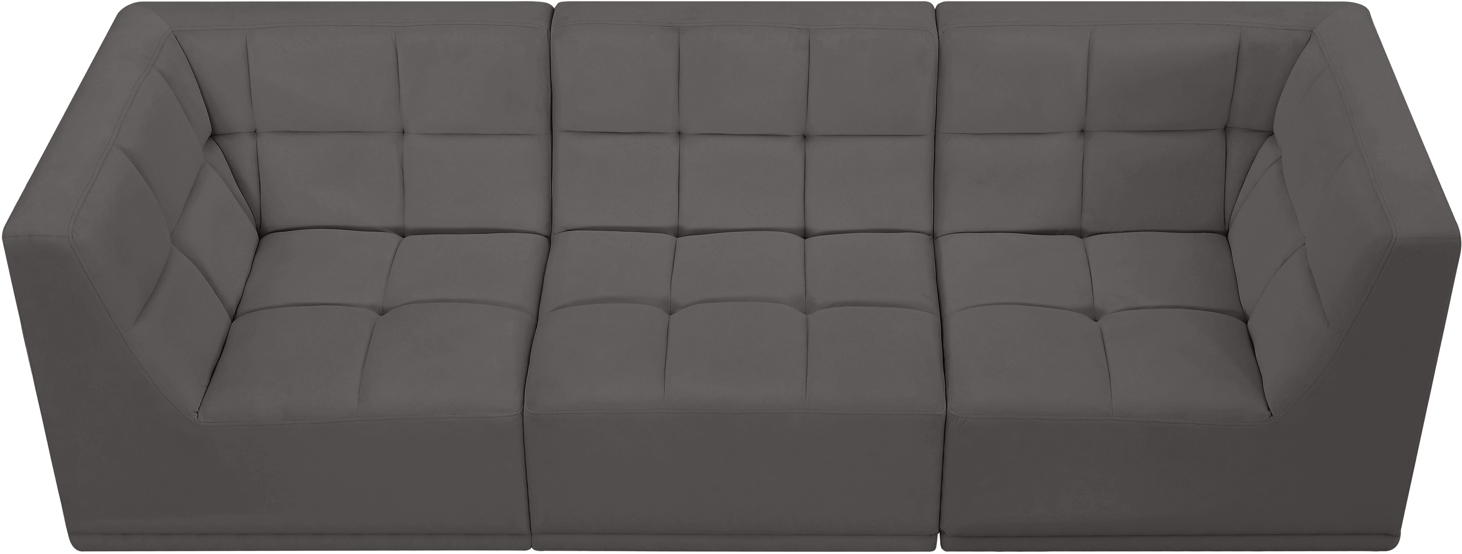 Bolster a contemporary vibe in your living room with this Relax modular sofa. Soft velvet upholstery offers delicate comfort, making this sofa cozy for anyone who sits in it. Biscuit tufting gives this sofa texture and a modern style, adding extra comfort and elegance to your living space. It s modular design allows you to create infinite configurations, making it a versatile piece to add to your home. A latch underneath the sofa makes it easy to attach to other pieces.