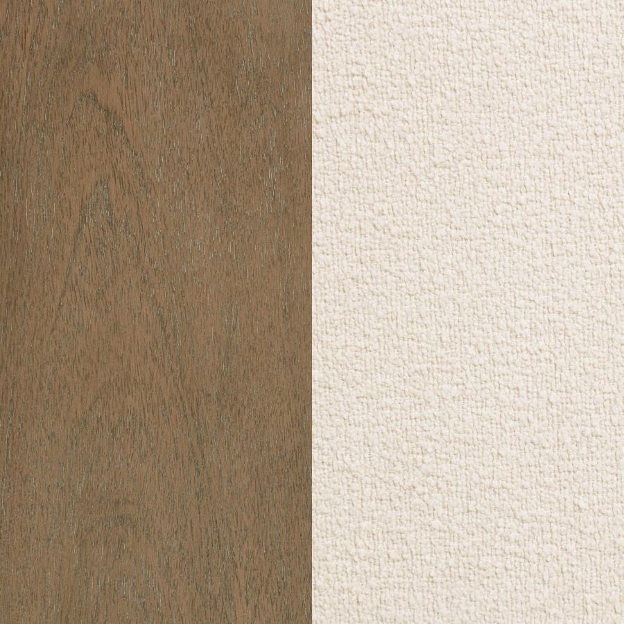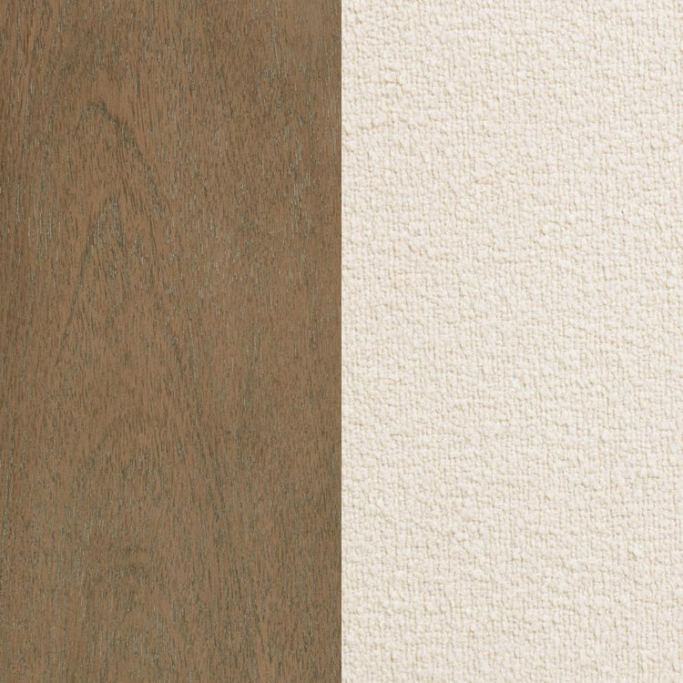 This French Provincial-inspired bed-end bench combines timeless elegance with functional comfort. Framed in solid poplar, engineered wood, and mango veneer, it features a washed mango finish that highlights the natural wood grain. The cushioned seat is upholstered in soft ecru fabric, offering a refined touch and a comfortable place to sit. Gracefully curved legs and scalloped detailing enhance its classic design, making it a perfect accent piece for the foot of the bed or additional seating in any space.
