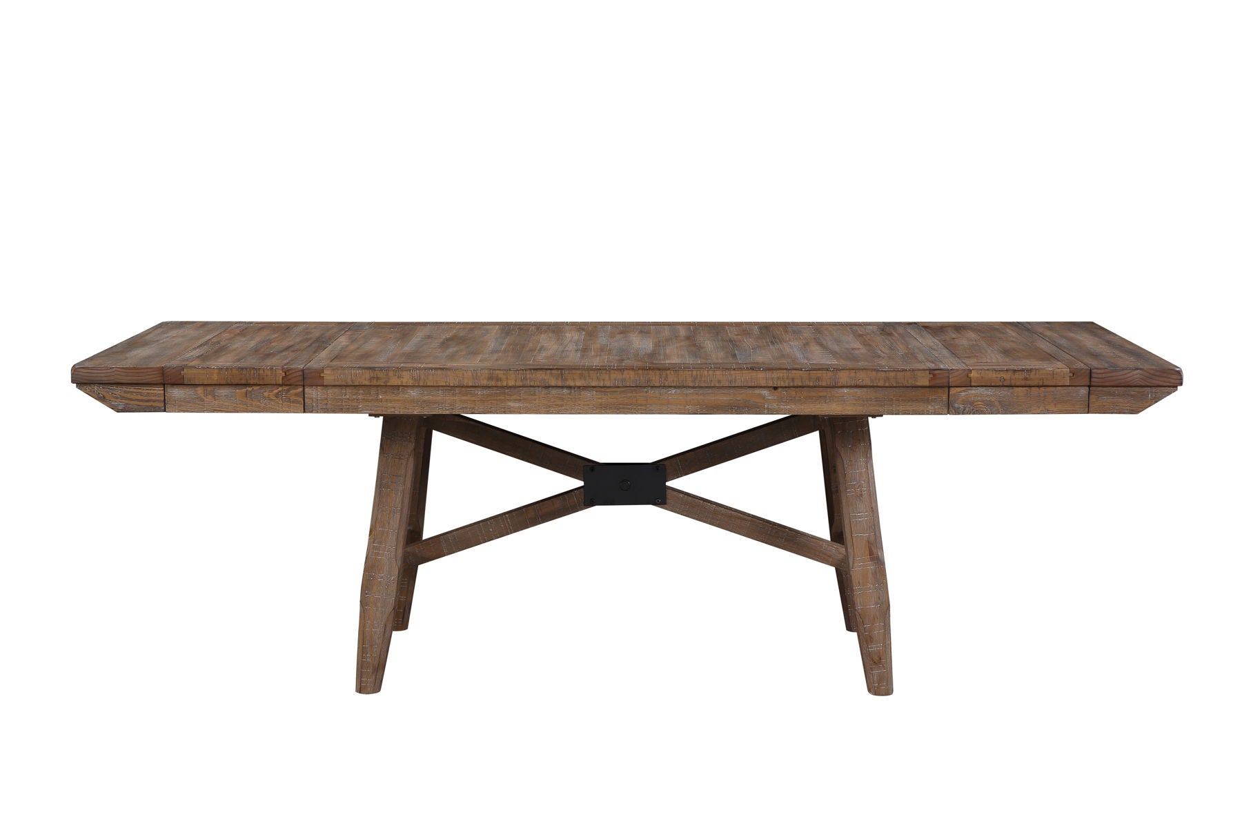 Casual and relaxed, but with a subtle sophistication you'll appreciate, Riverdale elevates Modern Ranch style with this upholstered dining set built for today's lifestyles. The RV700 dining set carries on the Riverdale of heirloom distressing and waxy finish hang-up but adds a new twist by pairing the table with a button-tufted, nail-head trim chair that dresses up the collection just enough to make your meals ever more delightful.