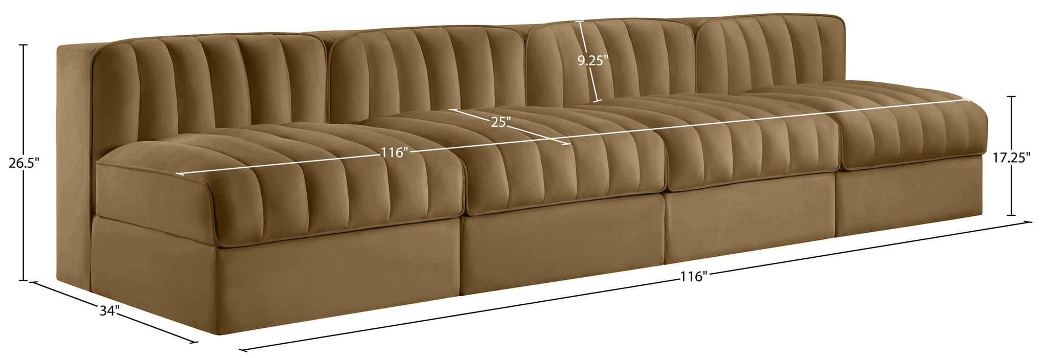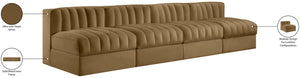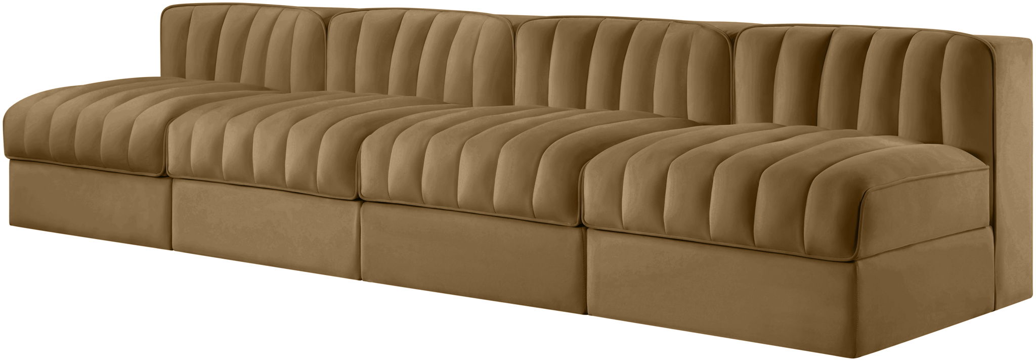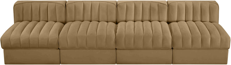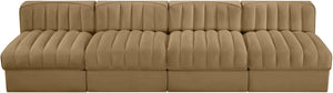 Rummi - Armless Velvet Performance Fabric Upholstered 4 Piece Modular Sofa - Saddle