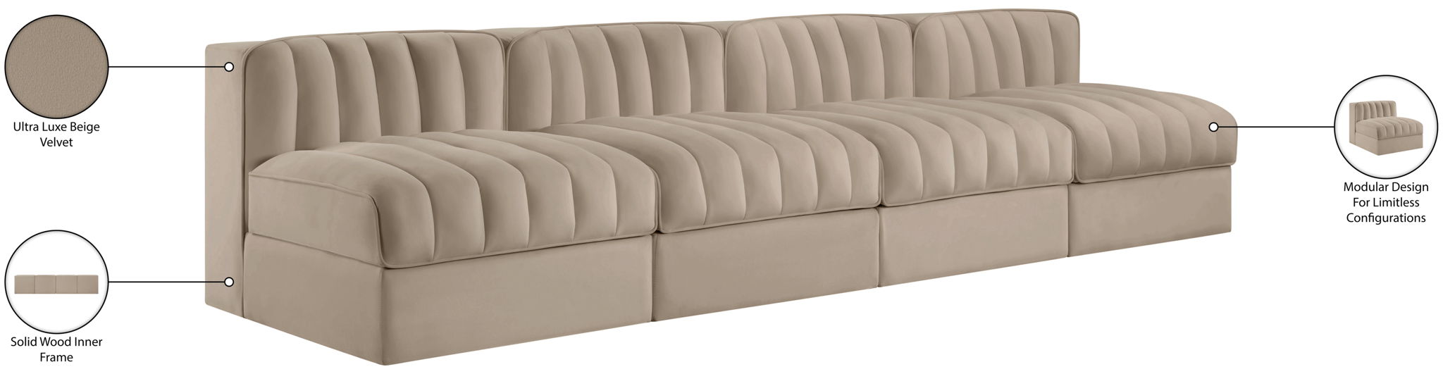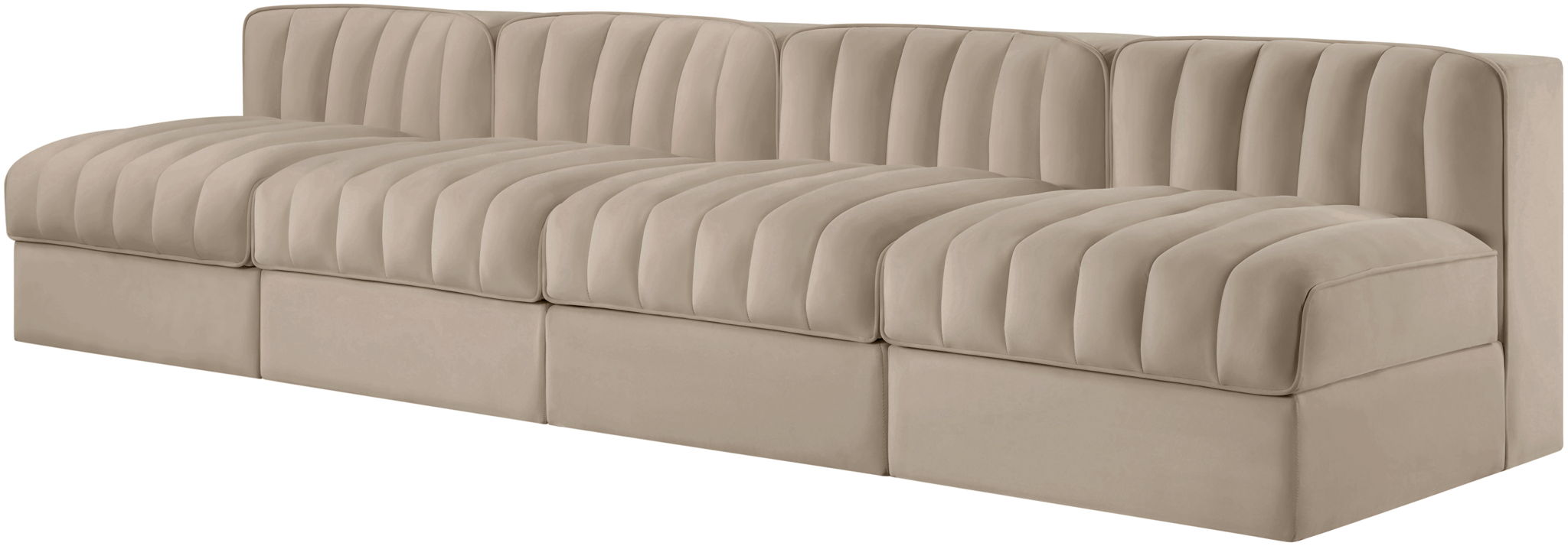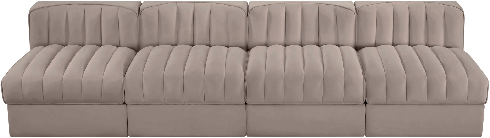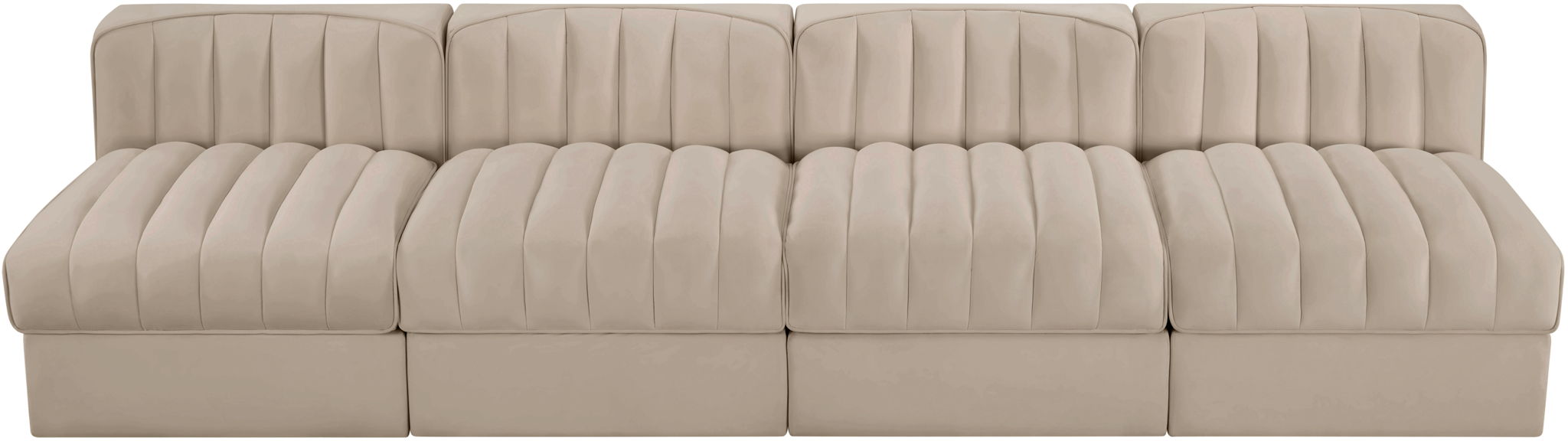 Rummi - Armless Velvet Performance Fabric Upholstered 4 Piece Modular Sofa - Beige