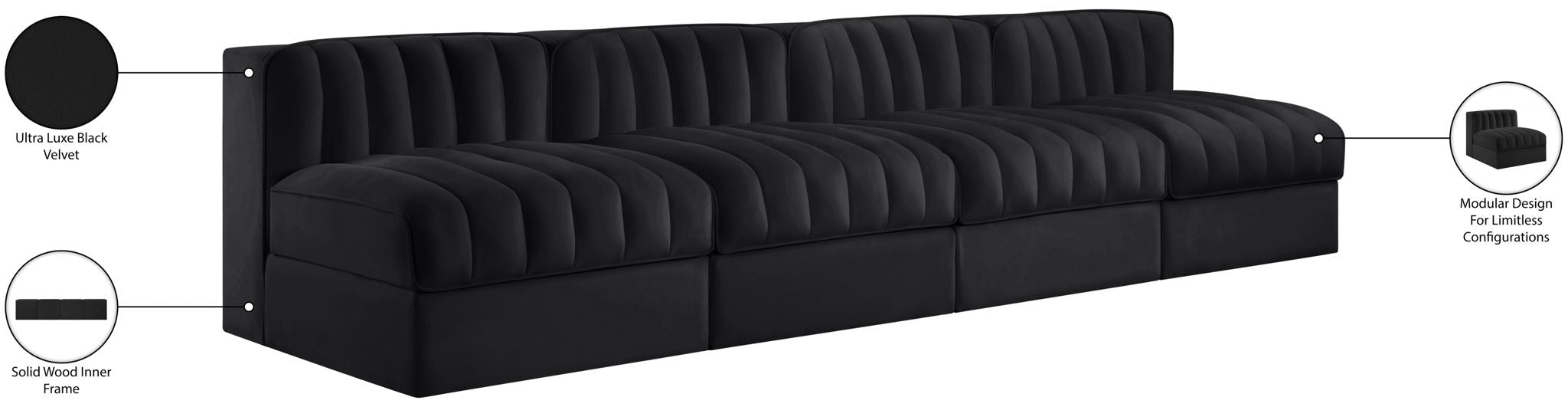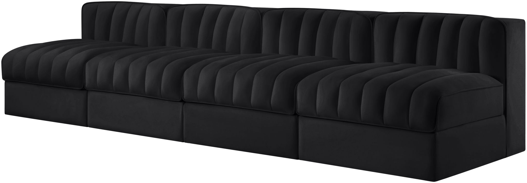 Rummi - Armless Velvet Performance Fabric Upholstered 4 Piece Modular Sofa - Black