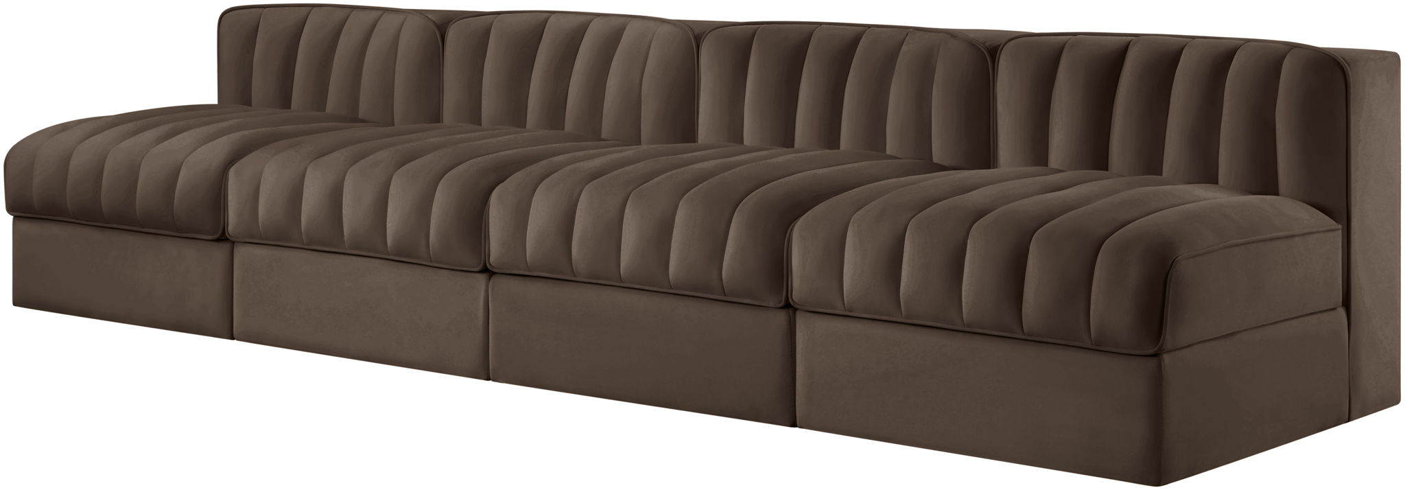 Rummi - Armless Velvet Performance Fabric Upholstered 4 Piece Modular Sofa - Brown