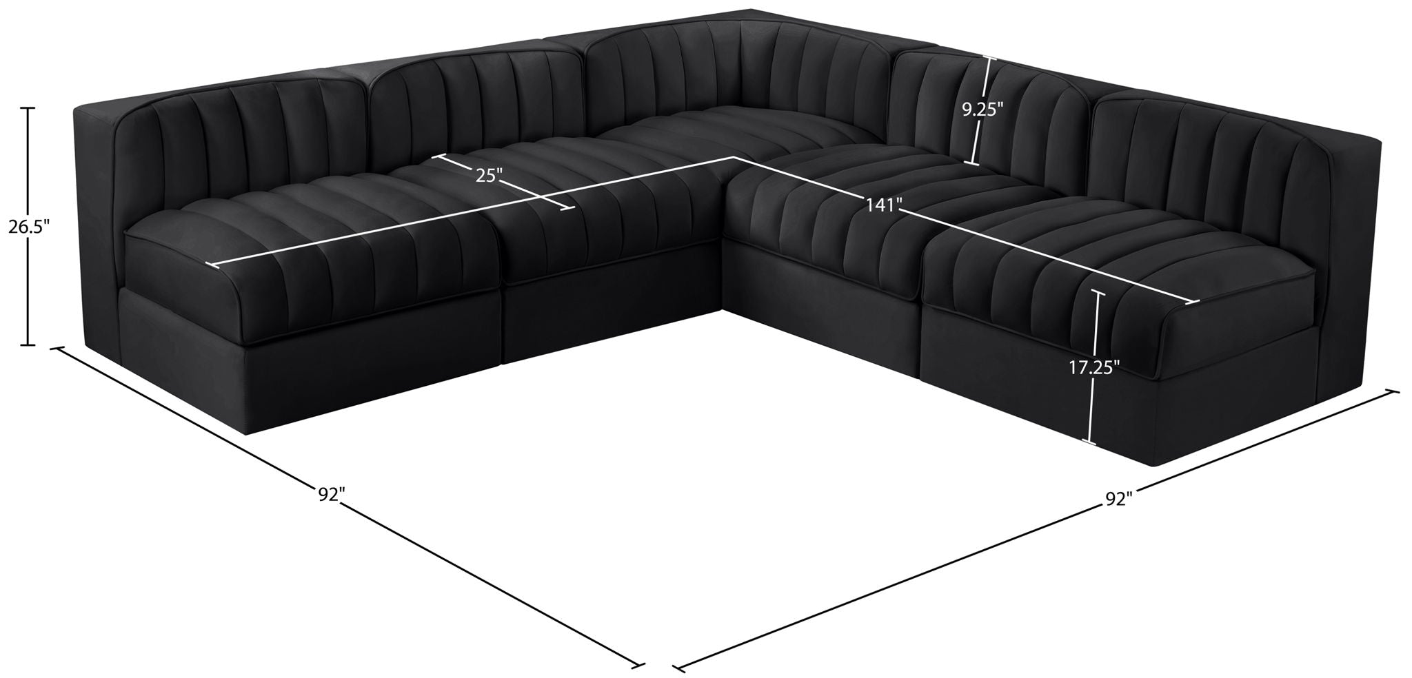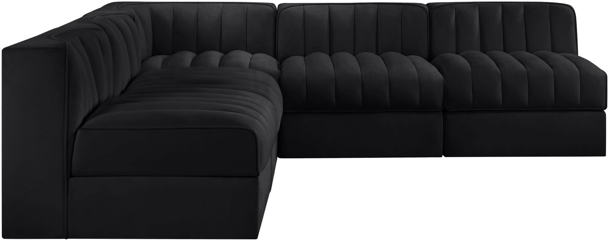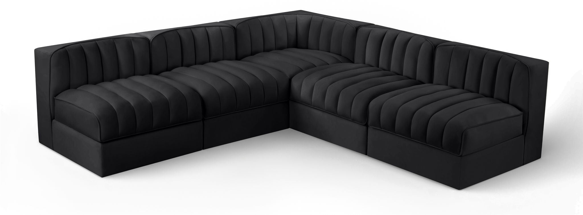 Rummi - Armless Velvet Performance Fabric Upholstered 5 Piece Modular Sectional - Black