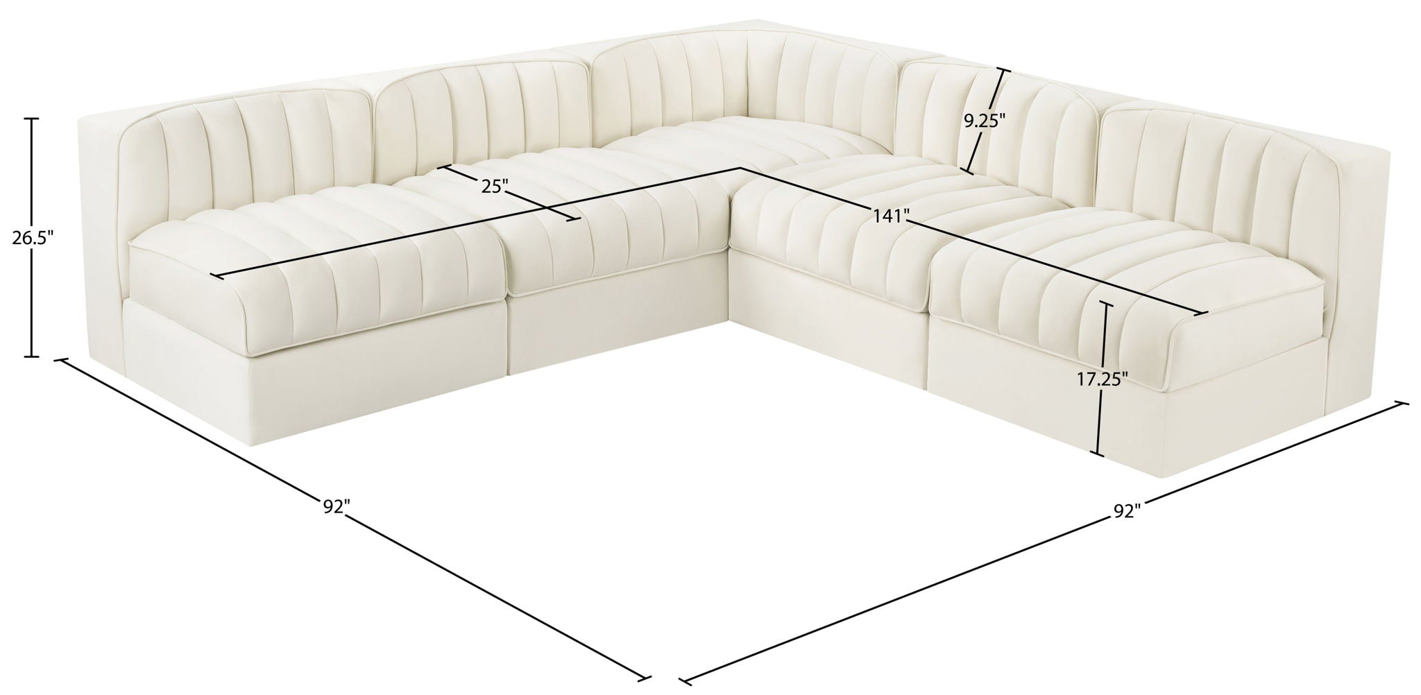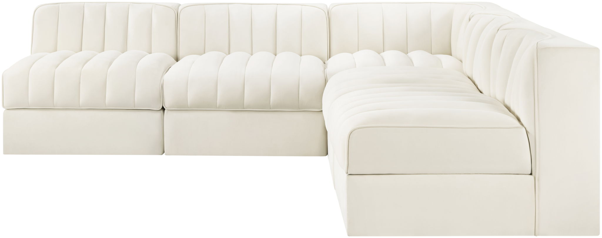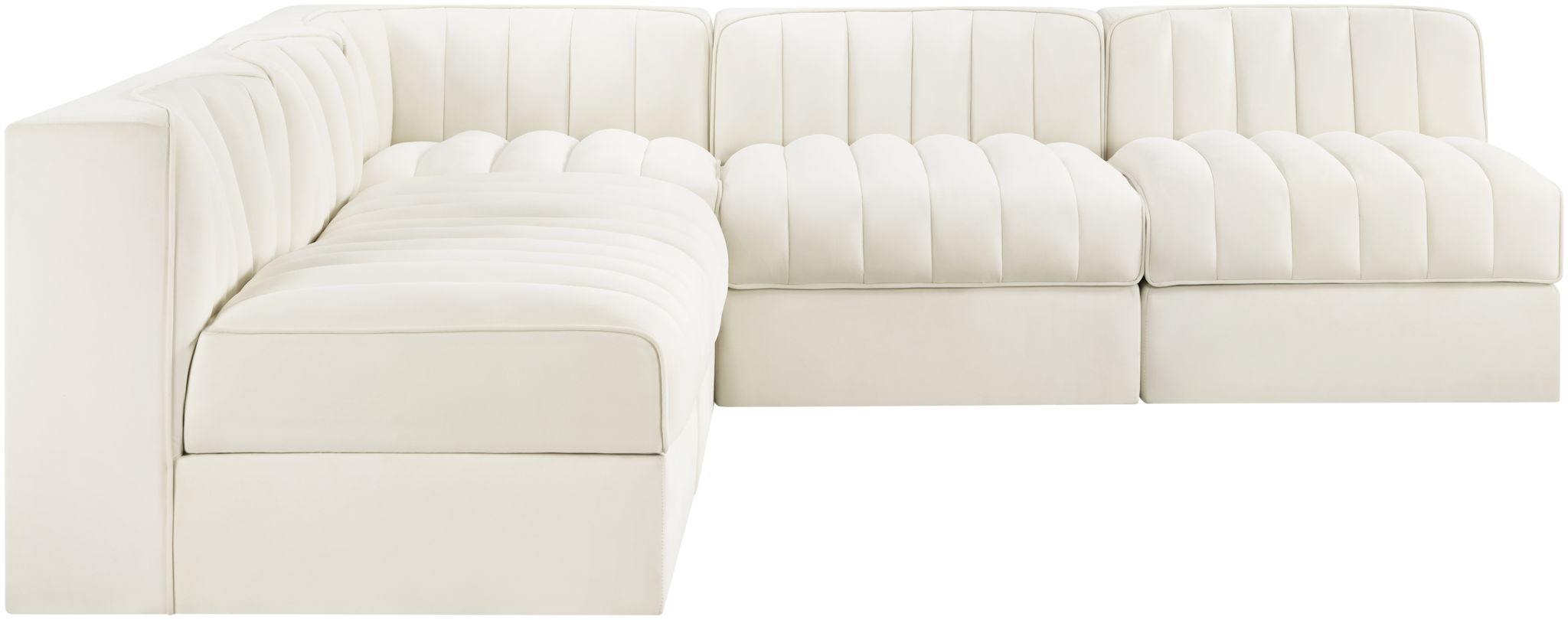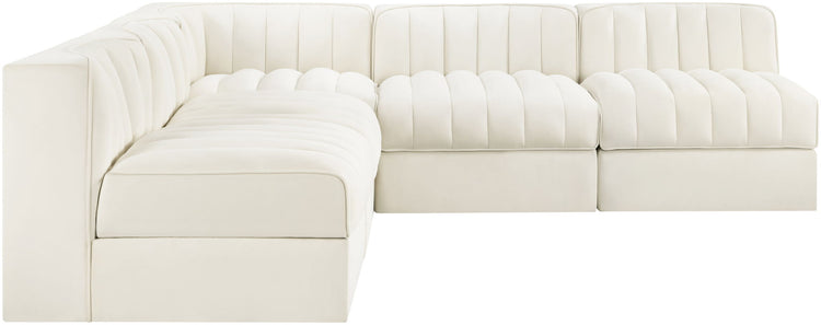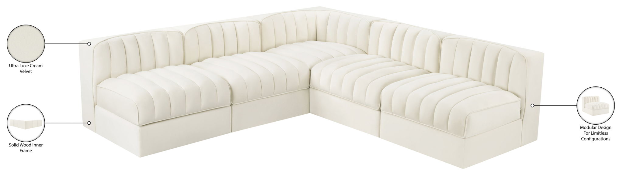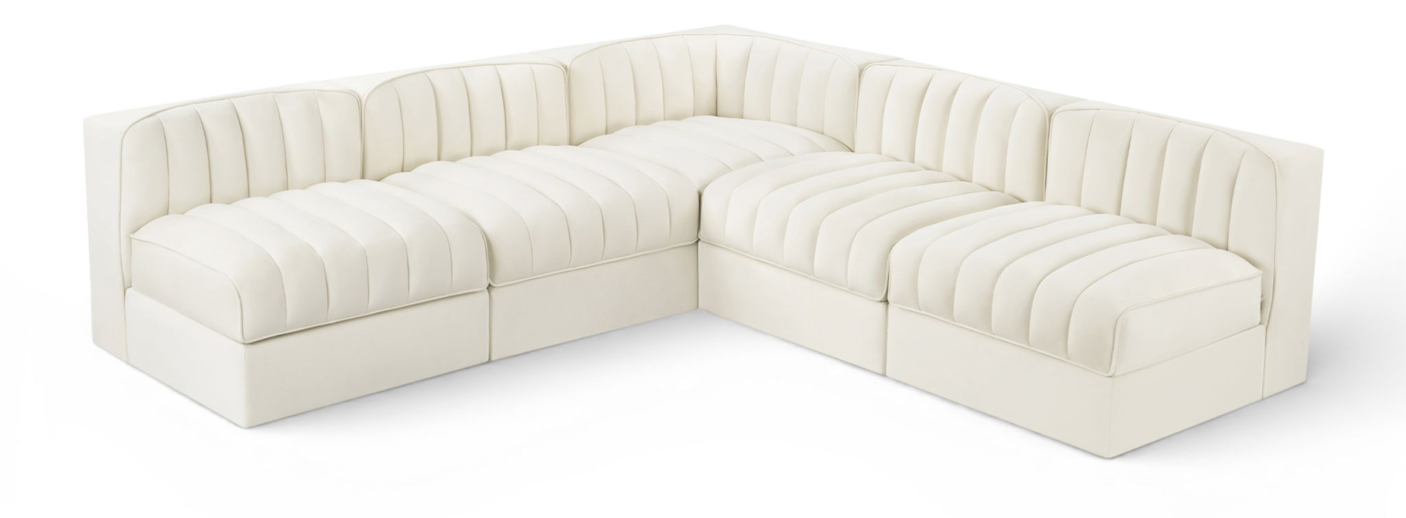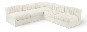 Rummi - Armless Velvet Performance Fabric Upholstered 5 Piece Modular Sectional - Cream