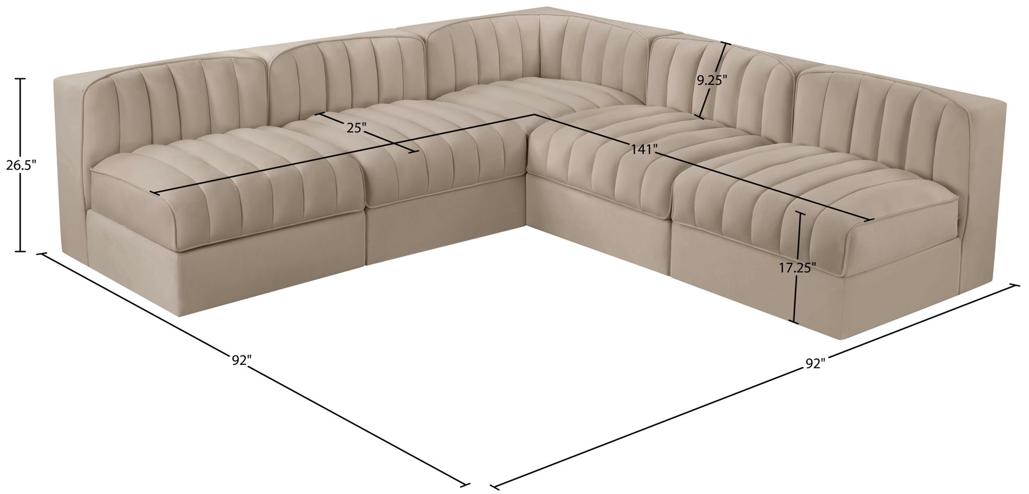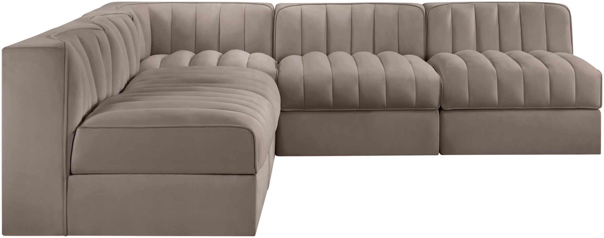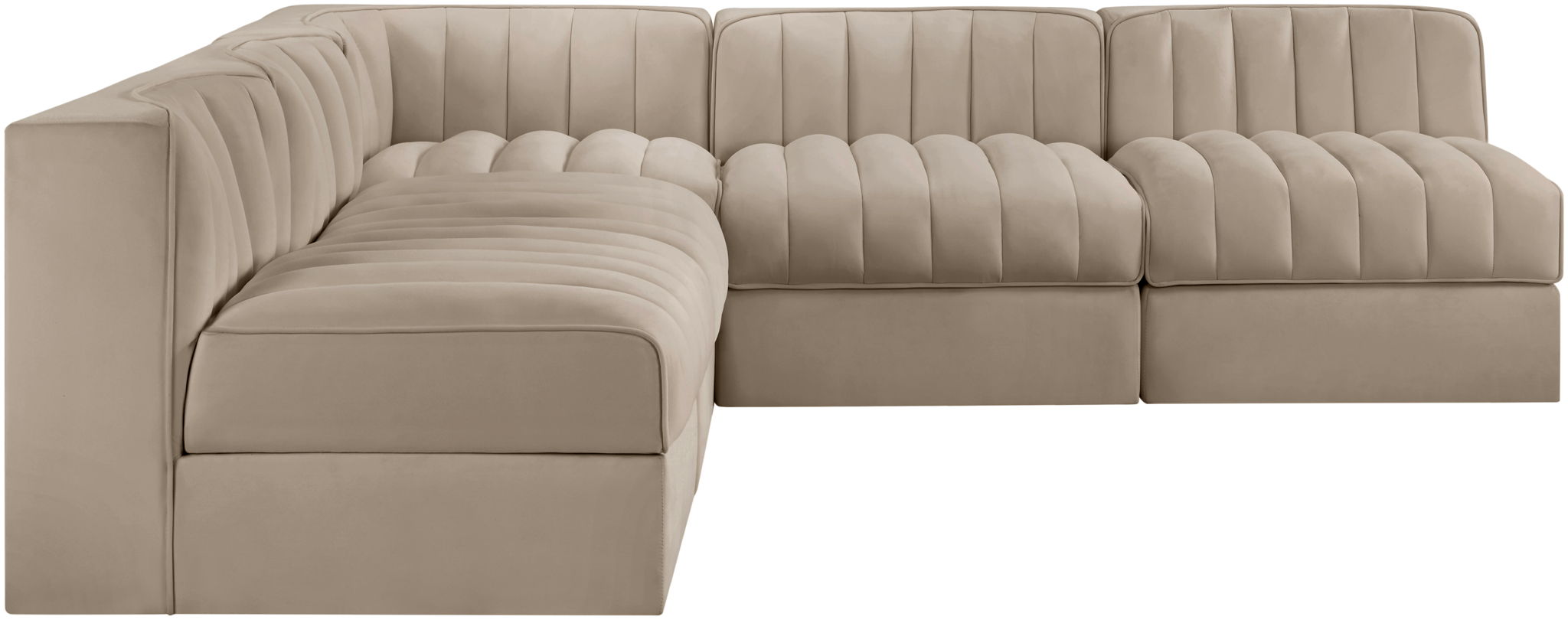 Rummi - Armless Velvet Performance Fabric Upholstered 5 Piece Modular Sectional - Beige