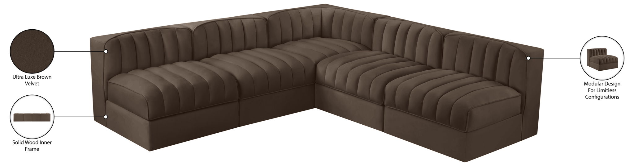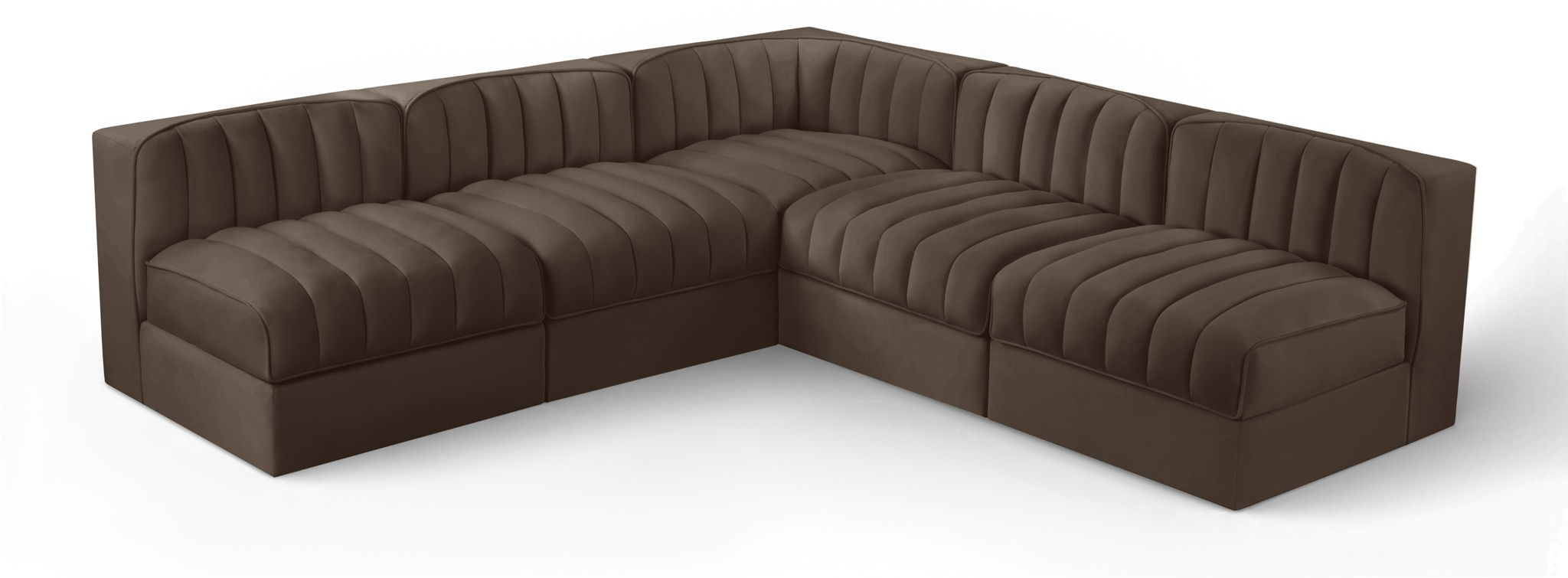 Rummi - Armless Velvet Performance Fabric Upholstered 5 Piece Modular Sectional - Brown