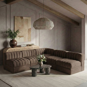 Rummi - Armless Velvet Performance Fabric Upholstered 5 Piece Modular Sectional