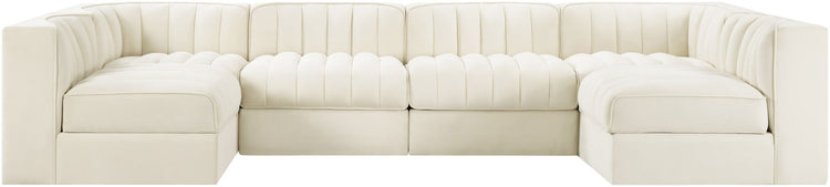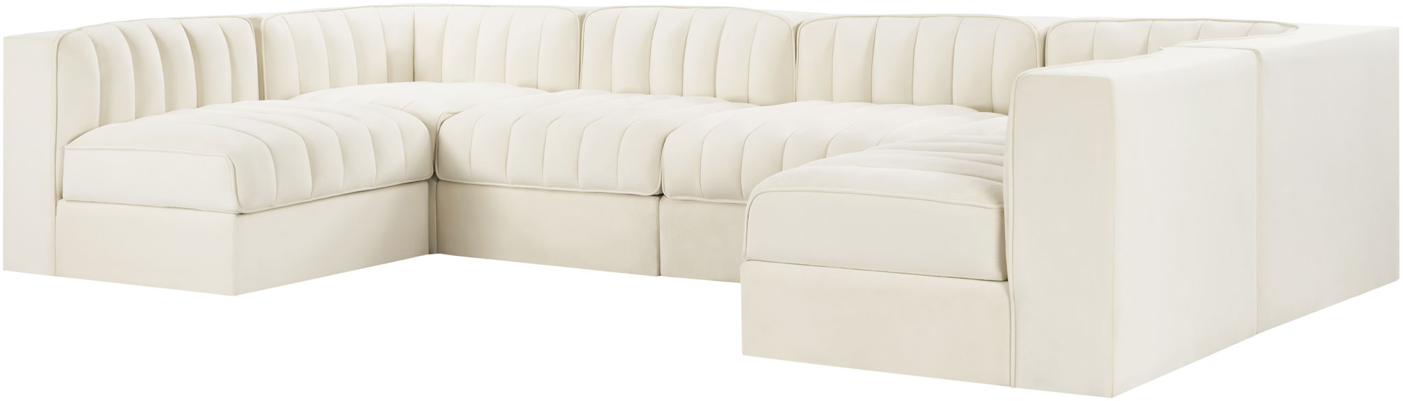 Rummi - Armless Velvet Performance Fabric Upholstered 6 Piece Modular Sectional - Cream