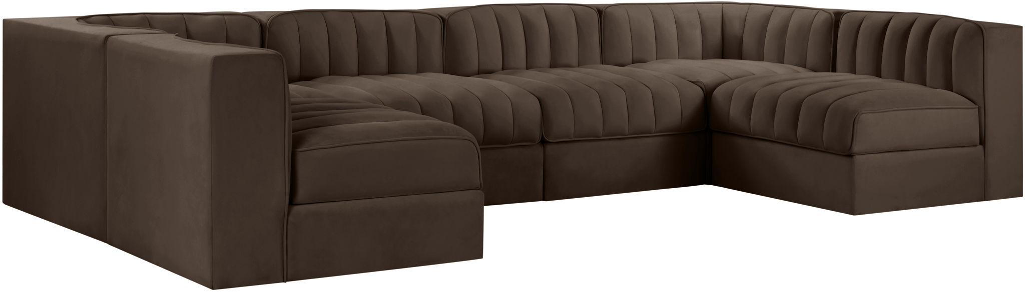 Rummi - Armless Velvet Performance Fabric Upholstered 6 Piece Modular Sectional - Brown