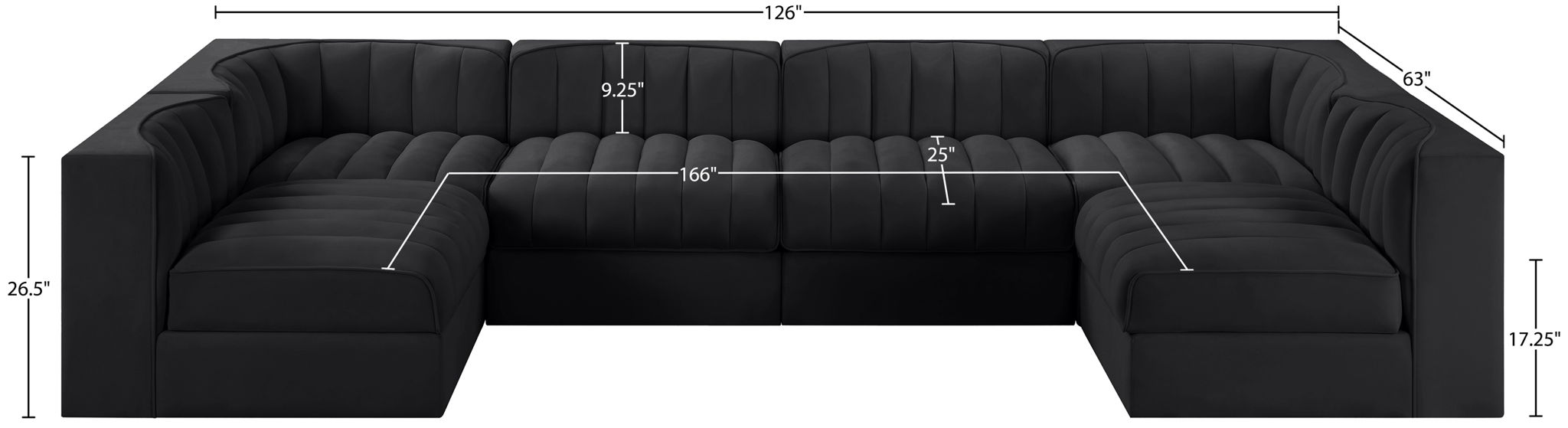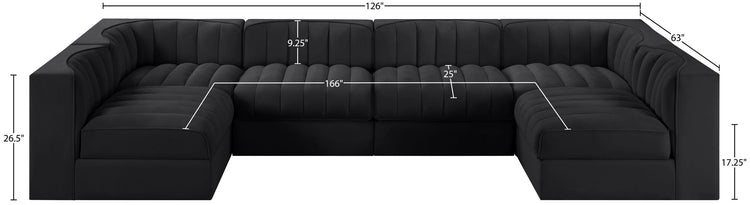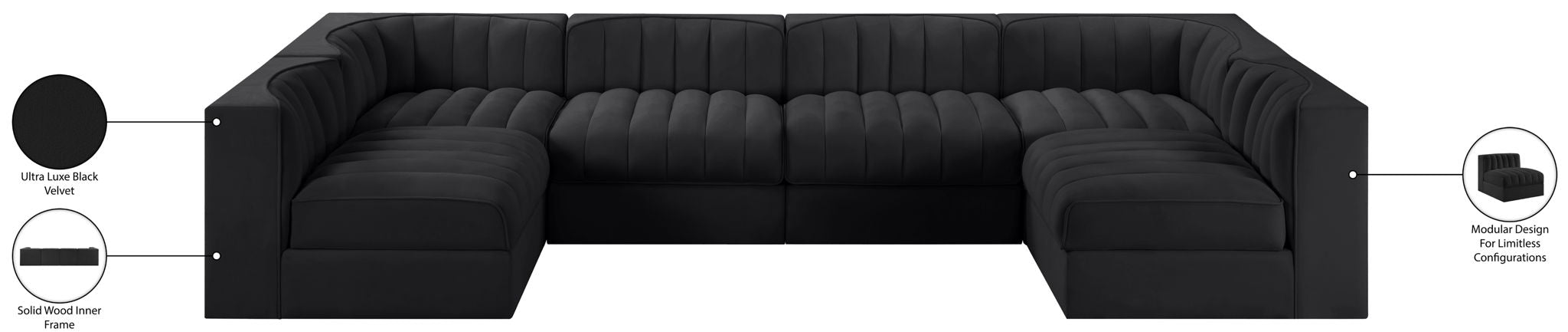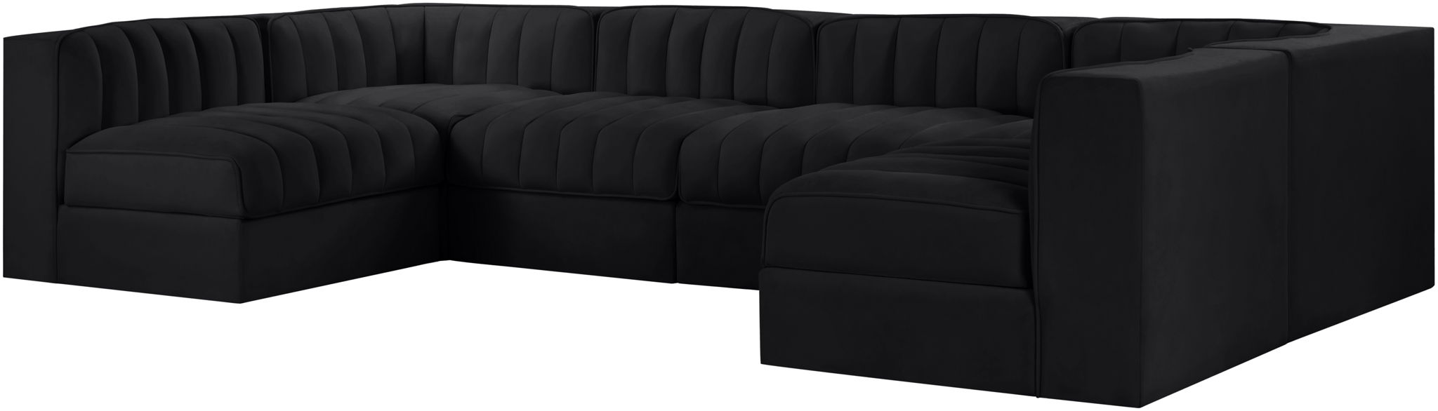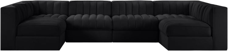 Rummi - Armless Velvet Performance Fabric Upholstered 6 Piece Modular Sectional - Black