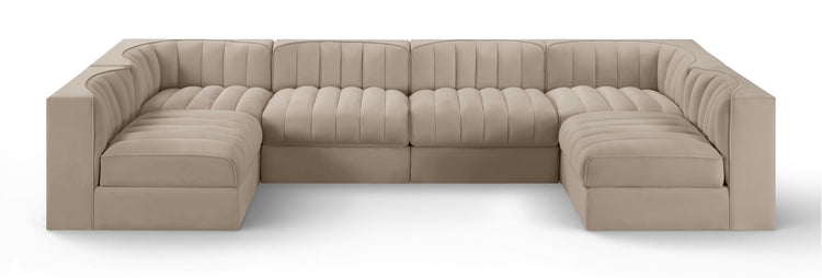 Rummi - Armless Velvet Performance Fabric Upholstered 6 Piece Modular Sectional - Beige