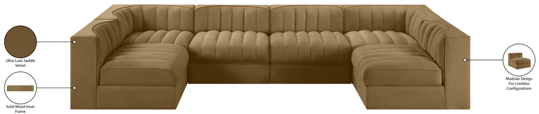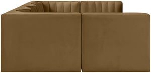 Rummi - Armless Velvet Performance Fabric Upholstered 6 Piece Modular Sectional - Saddle