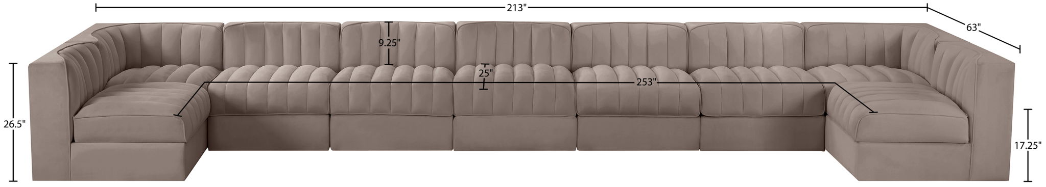 Rummi - Armless Velvet Performance Fabric Upholstered 9 Piece Modular Sectional - Beige
