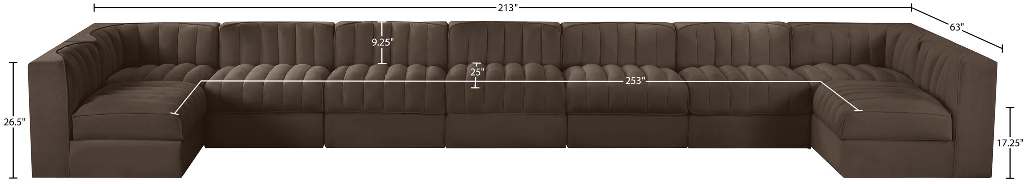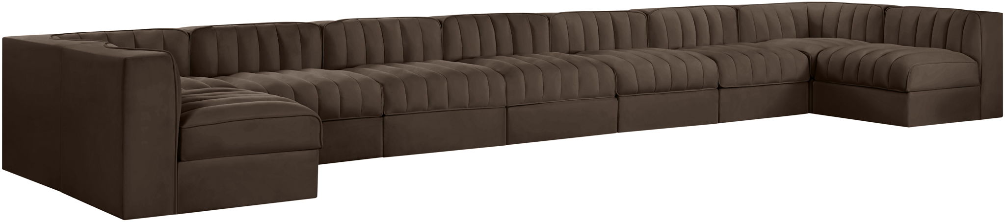 Rummi - Armless Velvet Performance Fabric Upholstered 9 Piece Modular Sectional - Brown