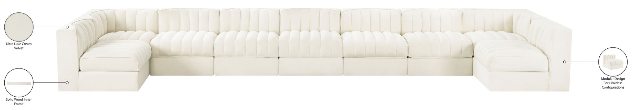 Rummi - Armless Velvet Performance Fabric Upholstered 9 Piece Modular Sectional - Cream