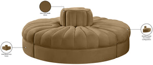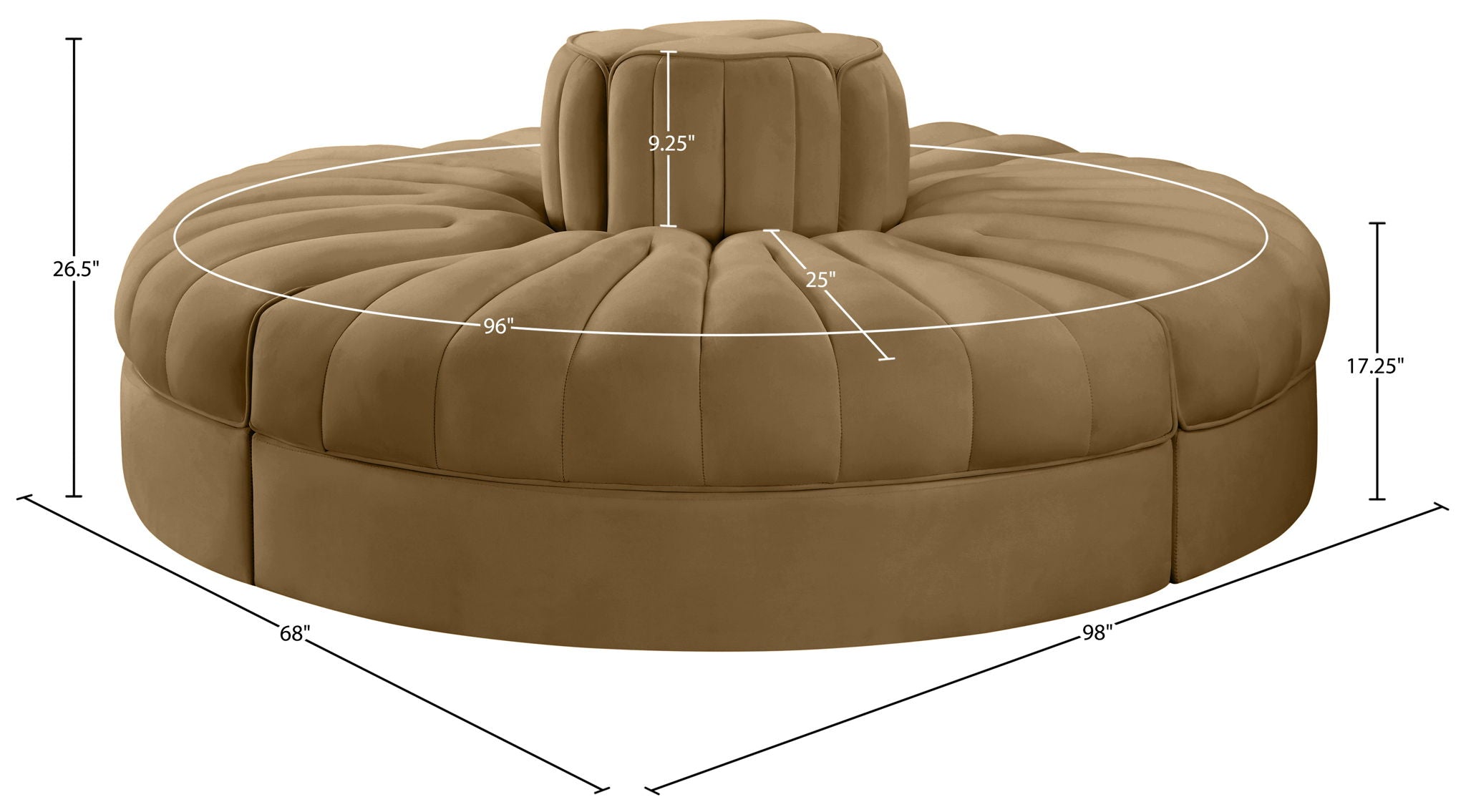 Rummi - Round Velvet Performance Fabric Upholstered 4 Piece Modular Sofa - Saddle