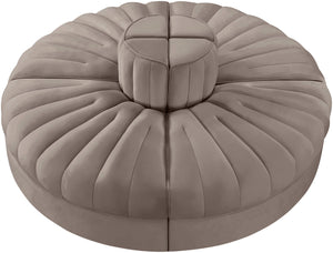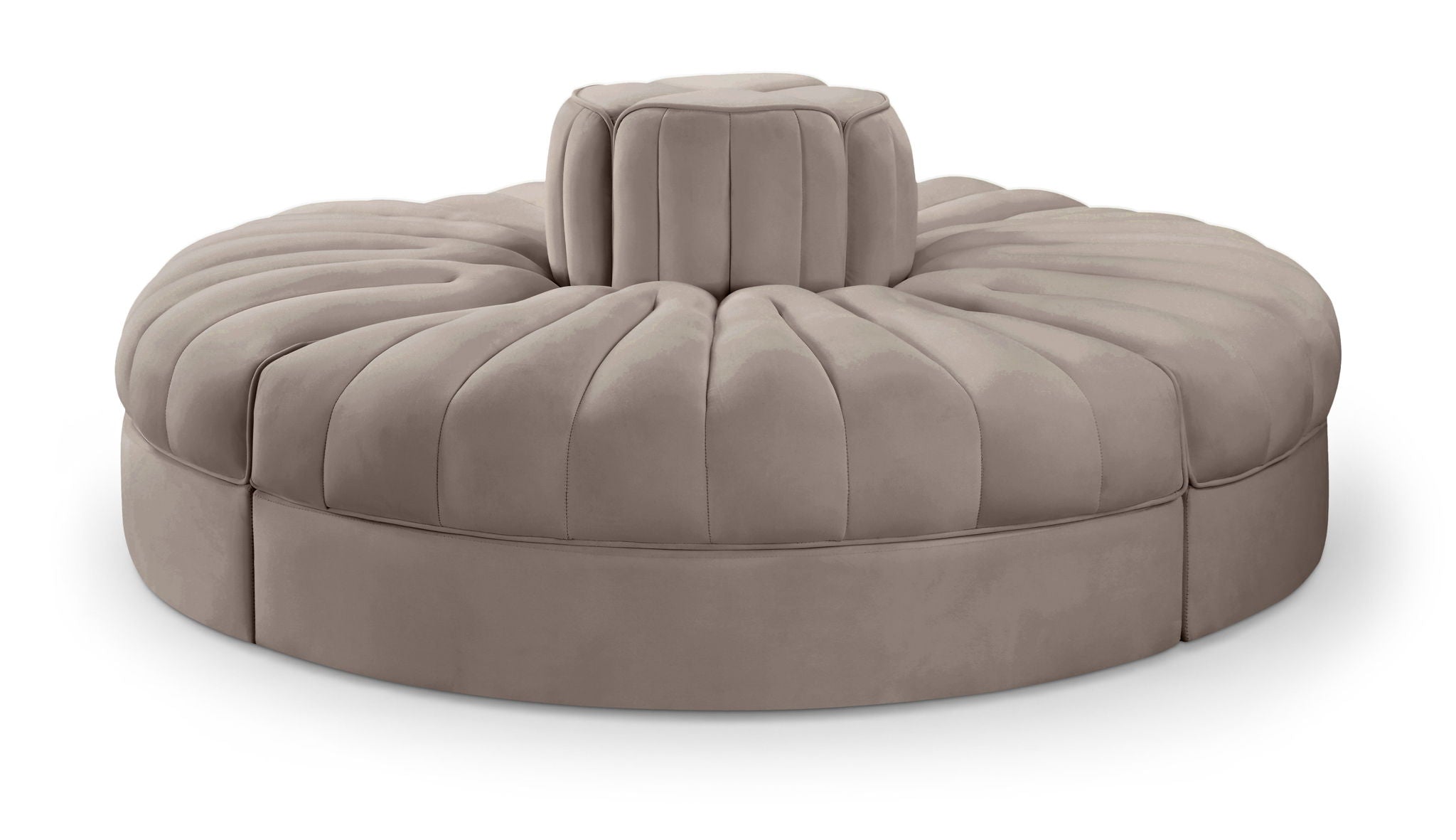 Rummi - Round Velvet Performance Fabric Upholstered 4 Piece Modular Sofa - Taupe