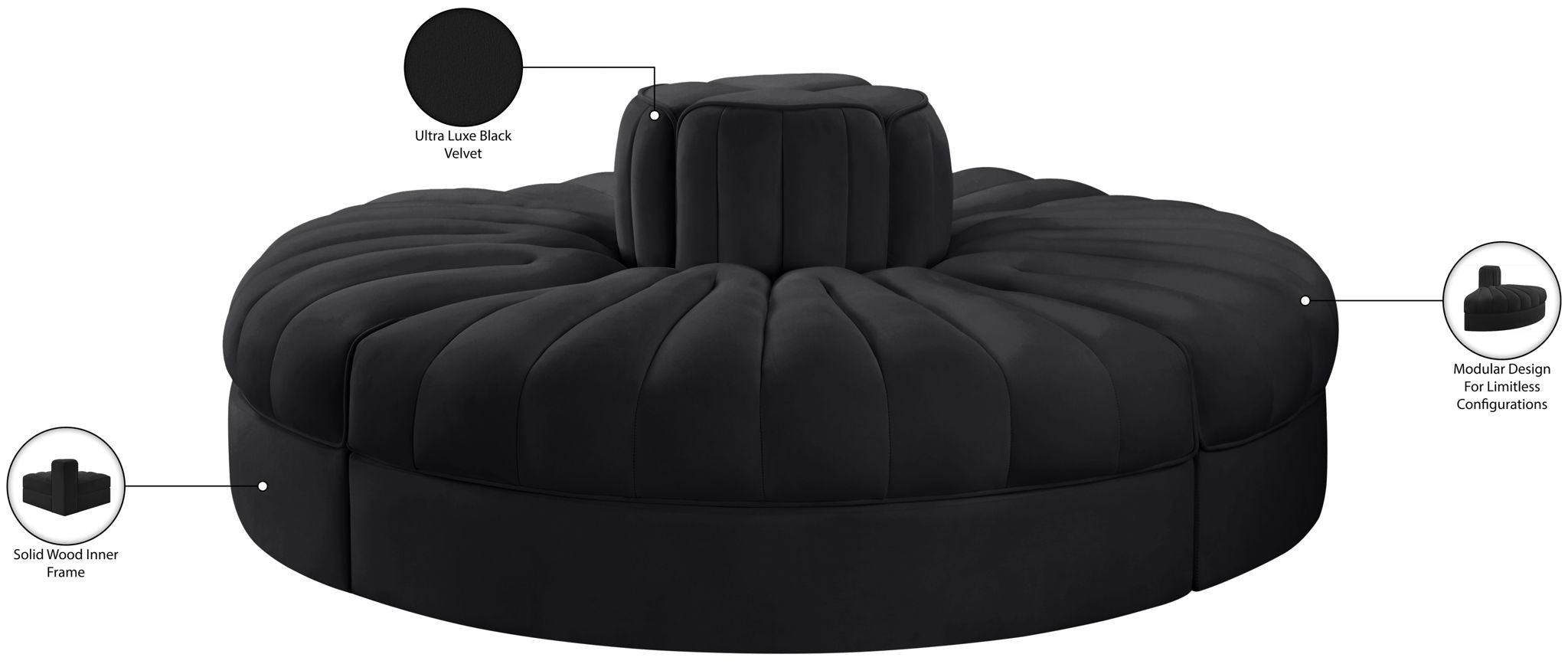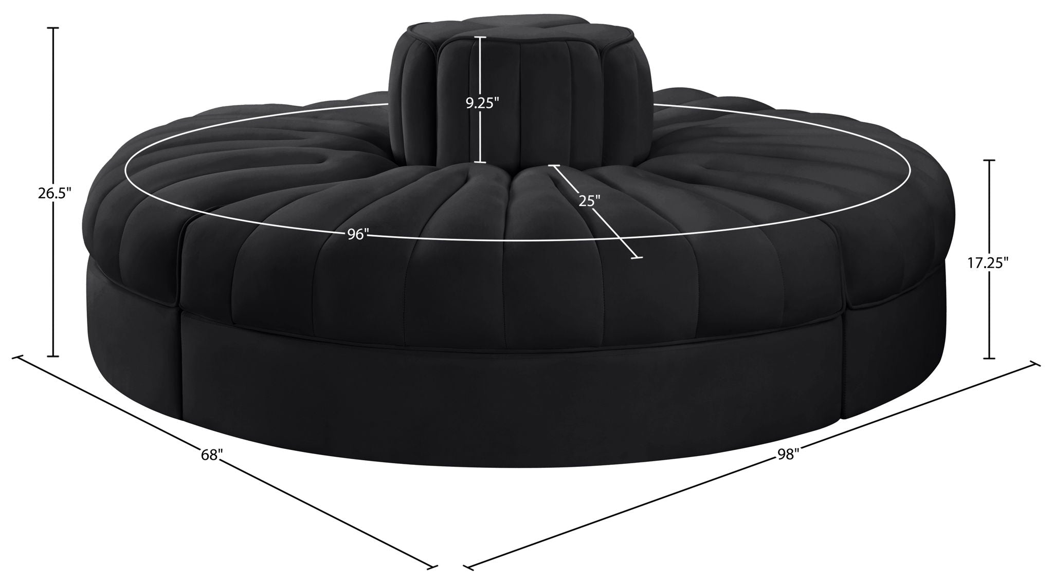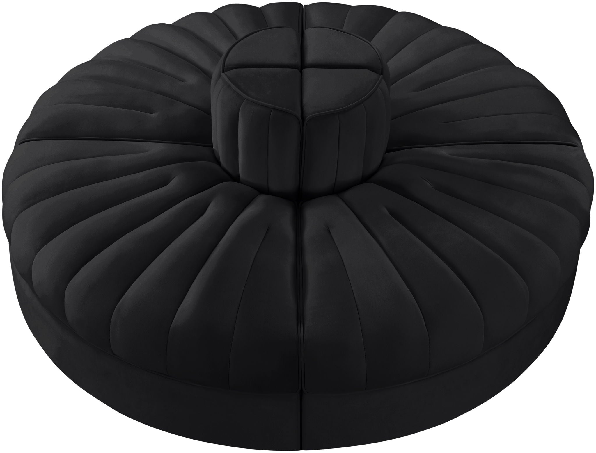 Rummi - Round Velvet Performance Fabric Upholstered 4 Piece Modular Sofa - Black