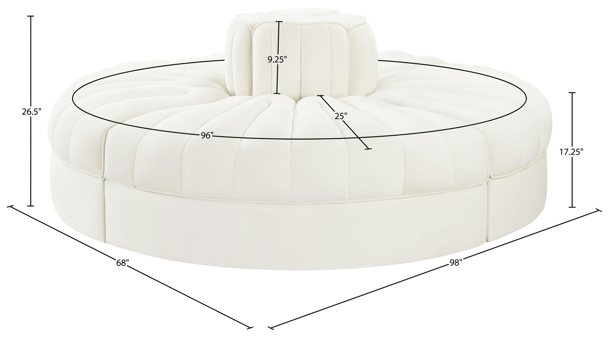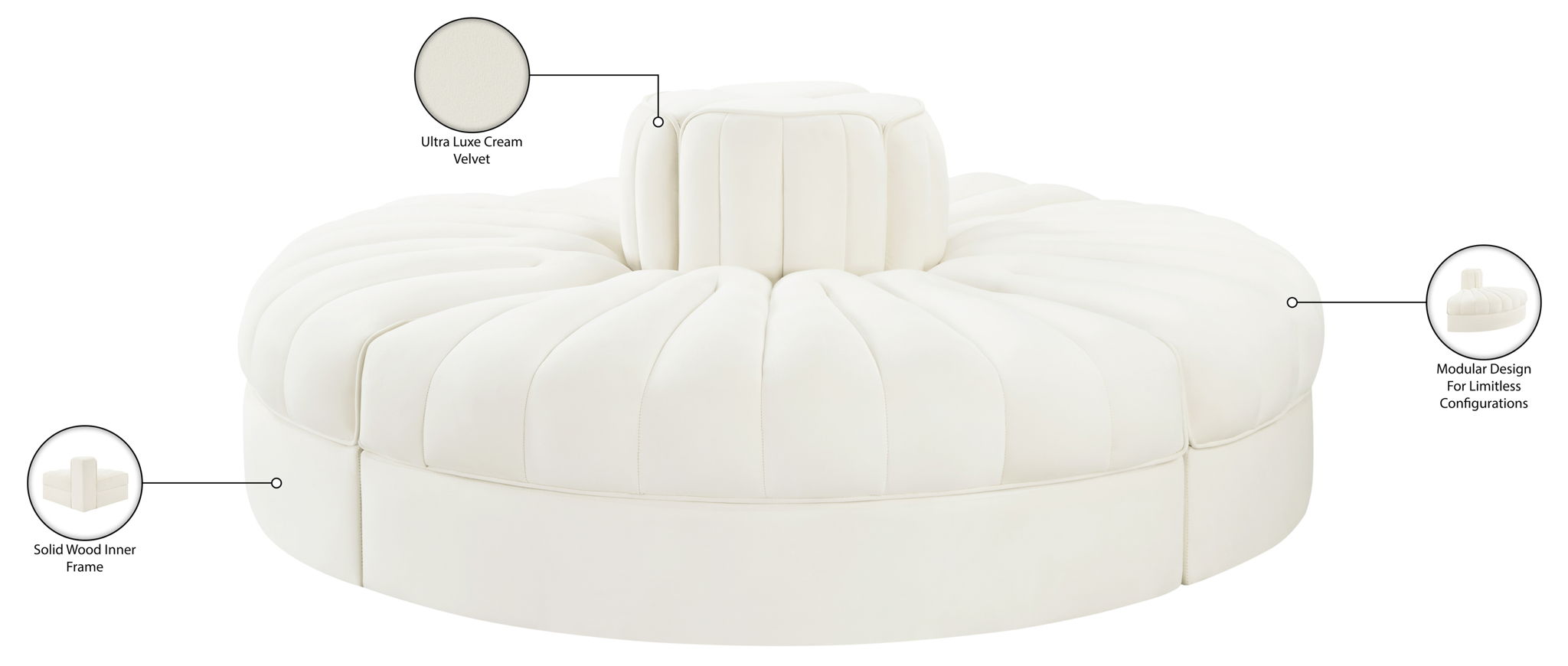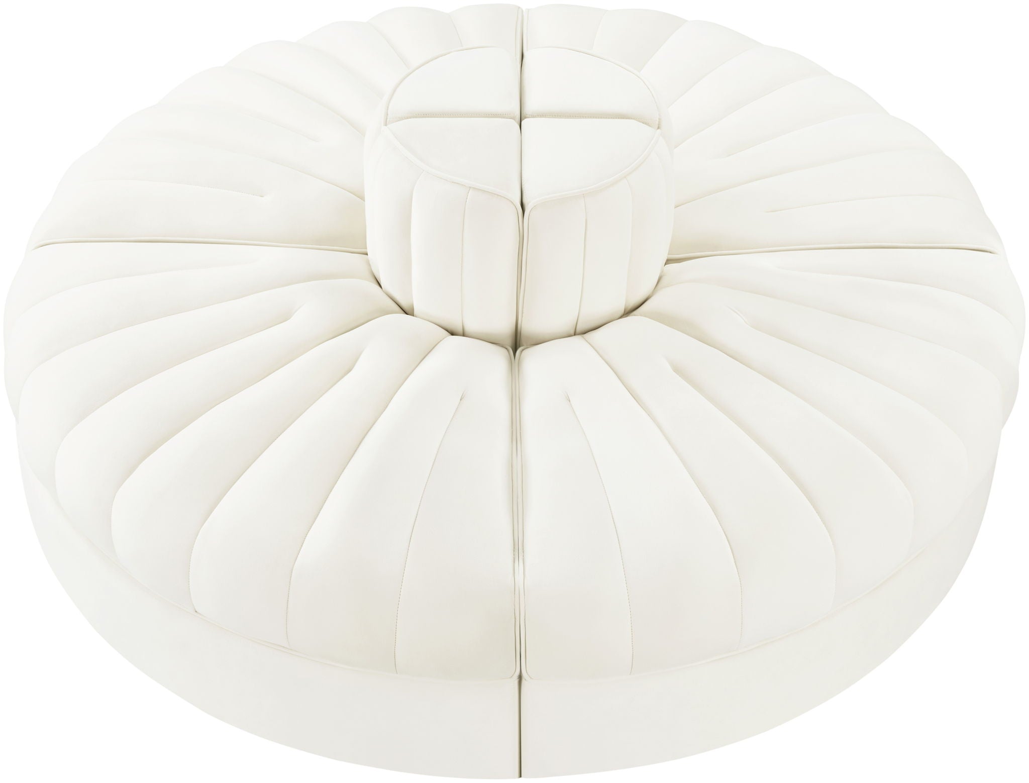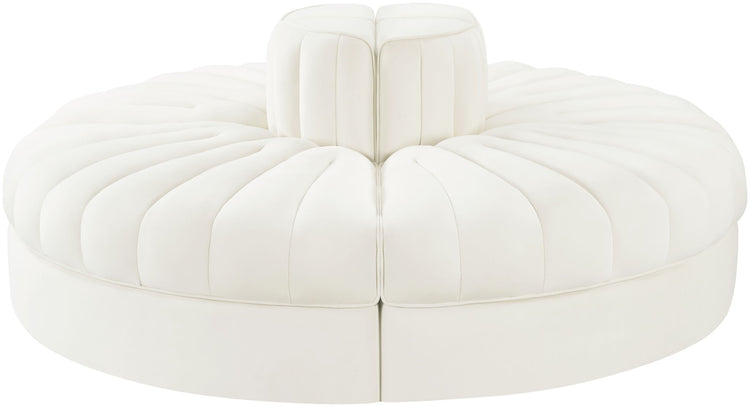 Rummi - Round Velvet Performance Fabric Upholstered 4 Piece Modular Sofa - Cream