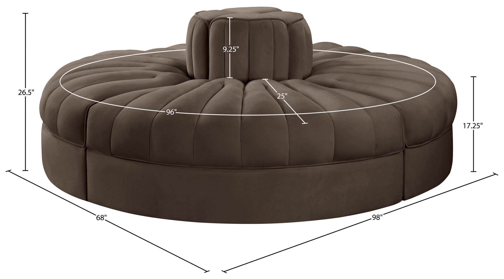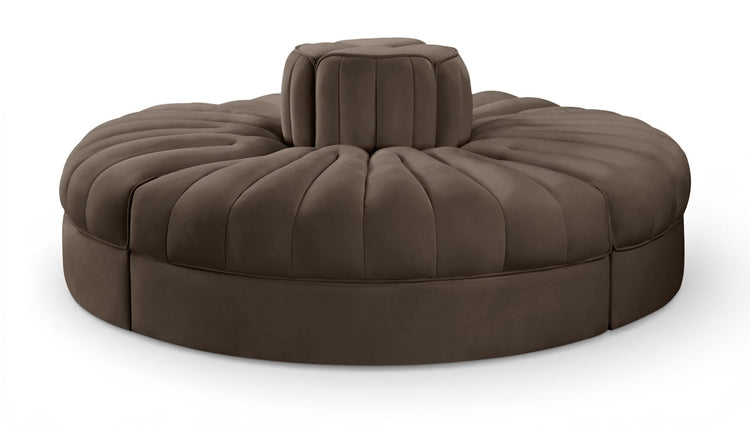 Rummi - Round Velvet Performance Fabric Upholstered 4 Piece Modular Sofa - Brown