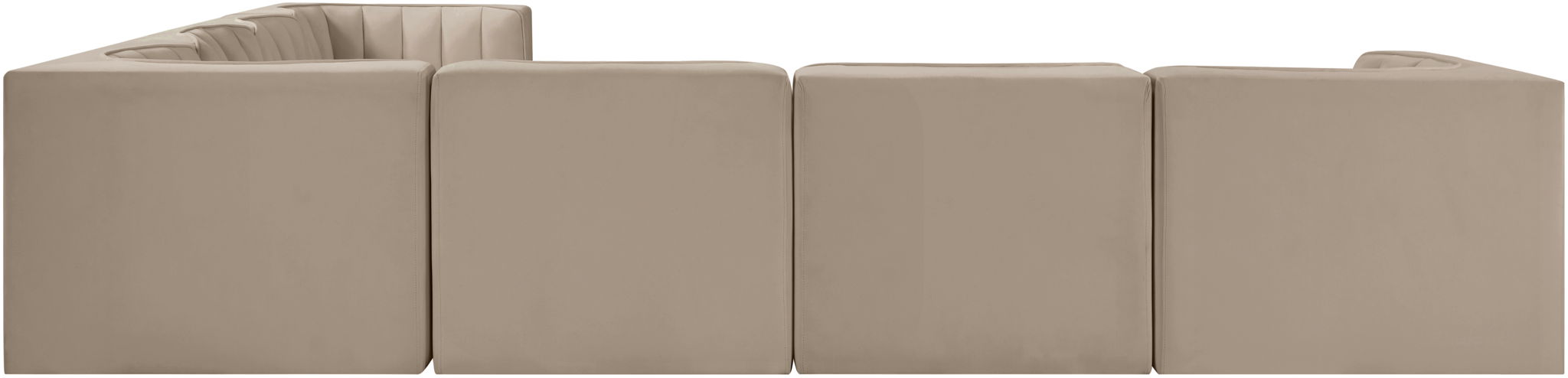 Rummi - Symmetrical Velvet Performance Fabric Upholstered 7 Piece Modular Sectional (With 3 Corner Chairs) - Beige