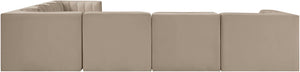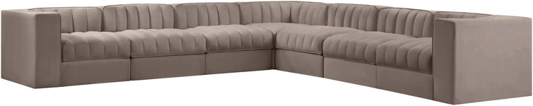 Rummi - Symmetrical Velvet Performance Fabric Upholstered 7 Piece Modular Sectional (With 3 Corner Chairs) - Taupe