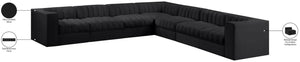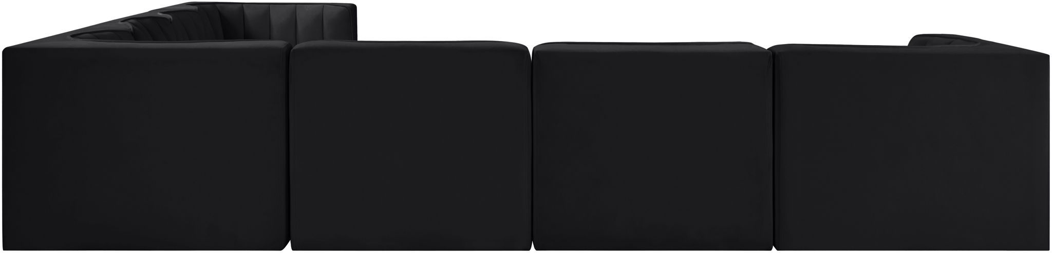 Rummi - Symmetrical Velvet Performance Fabric Upholstered 7 Piece Modular Sectional (With 3 Corner Chairs) - Black