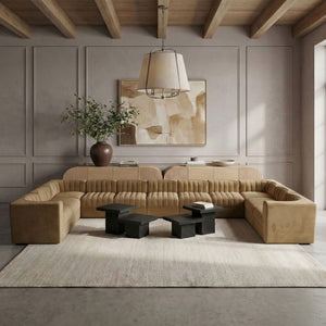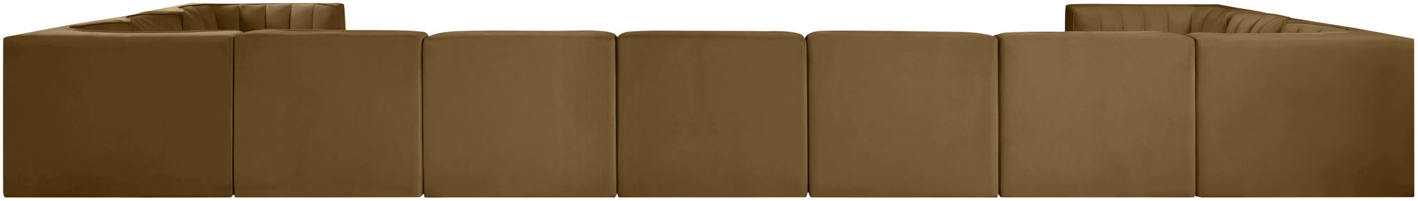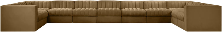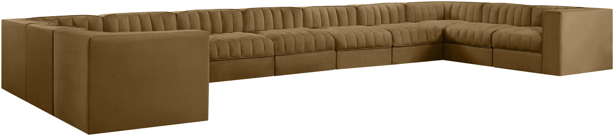 Rummi - Velvet Performance Fabric Upholstered 11 Piece Modular Sectional - Saddle