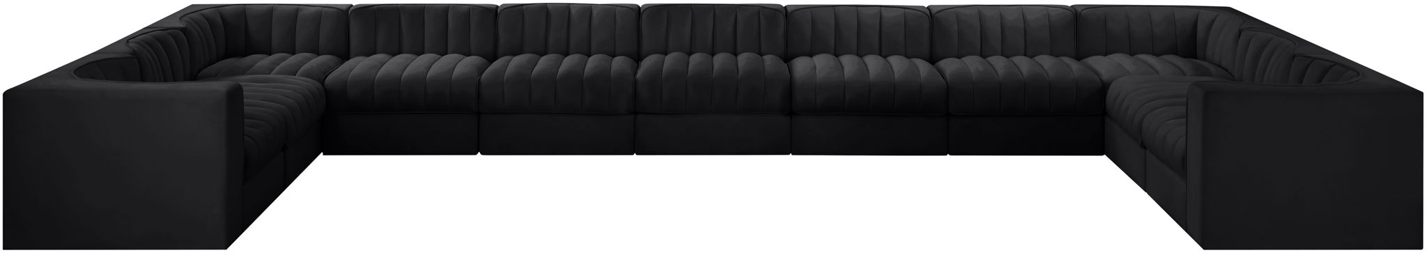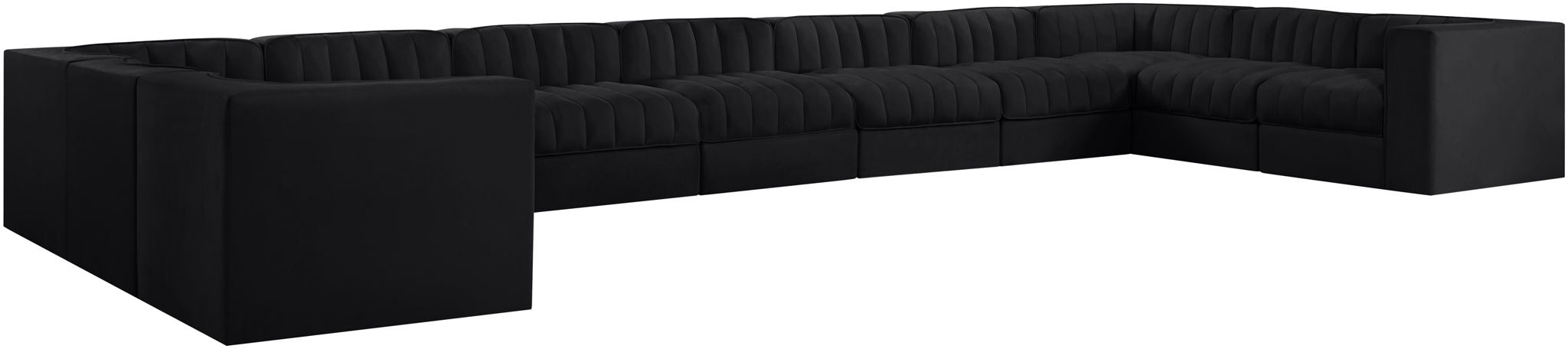 Rummi - Velvet Performance Fabric Upholstered 11 Piece Modular Sectional - Black