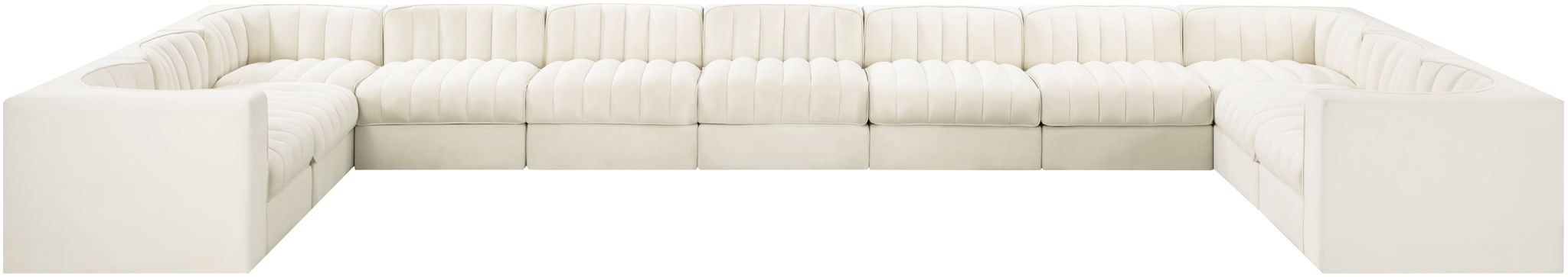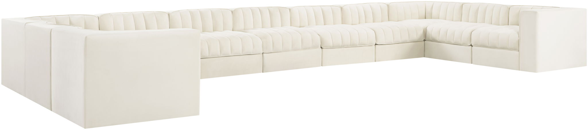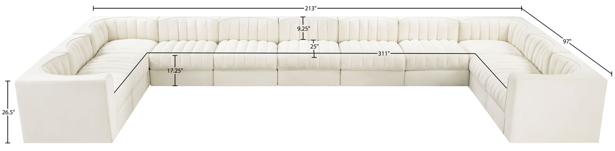 Rummi - Velvet Performance Fabric Upholstered 11 Piece Modular Sectional - Cream