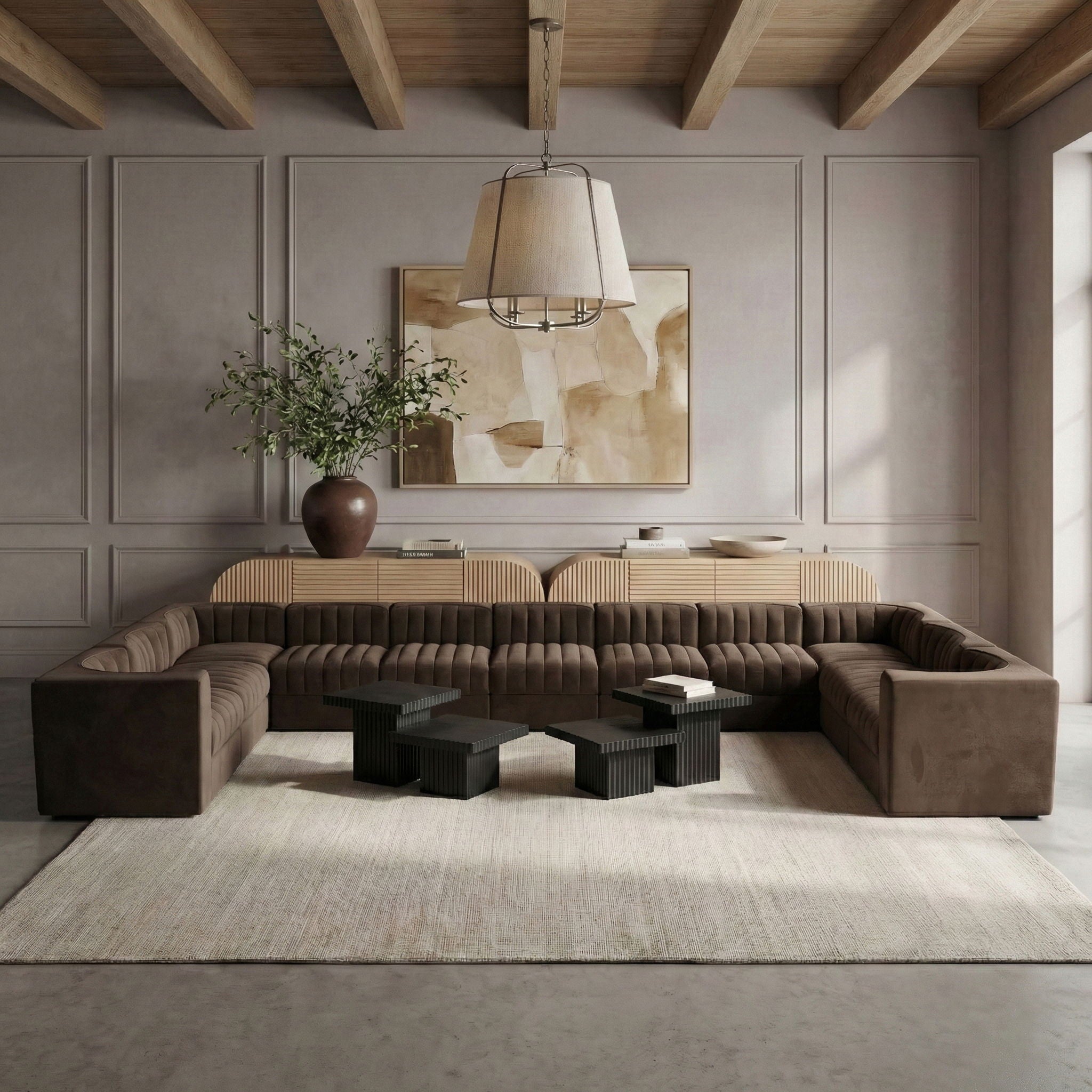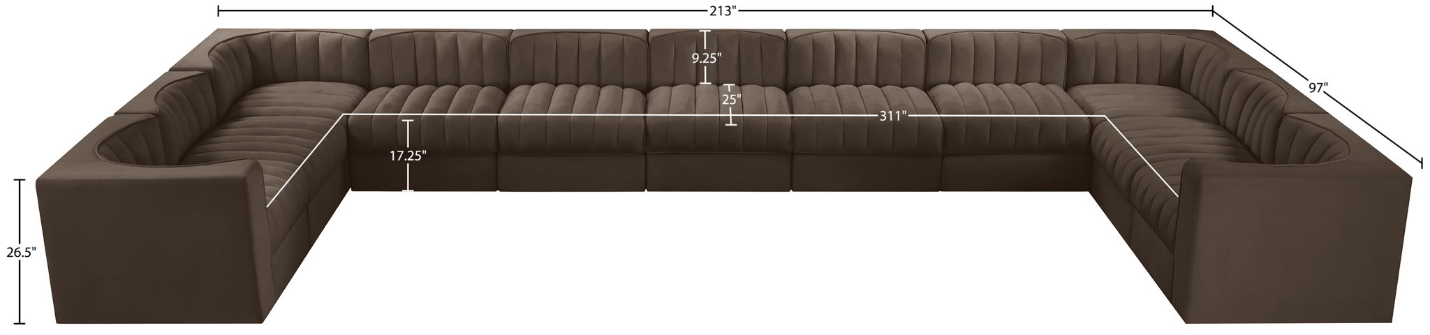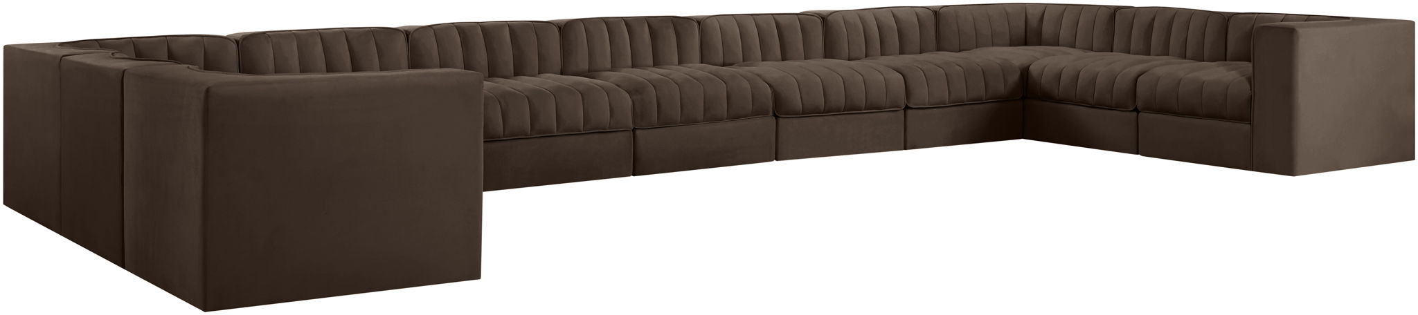 Rummi - Velvet Performance Fabric Upholstered 11 Piece Modular Sectional - Brown