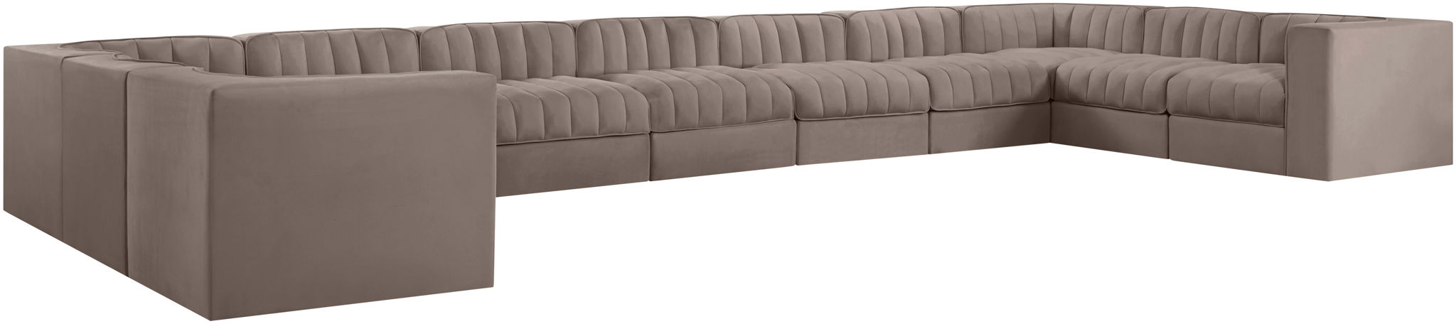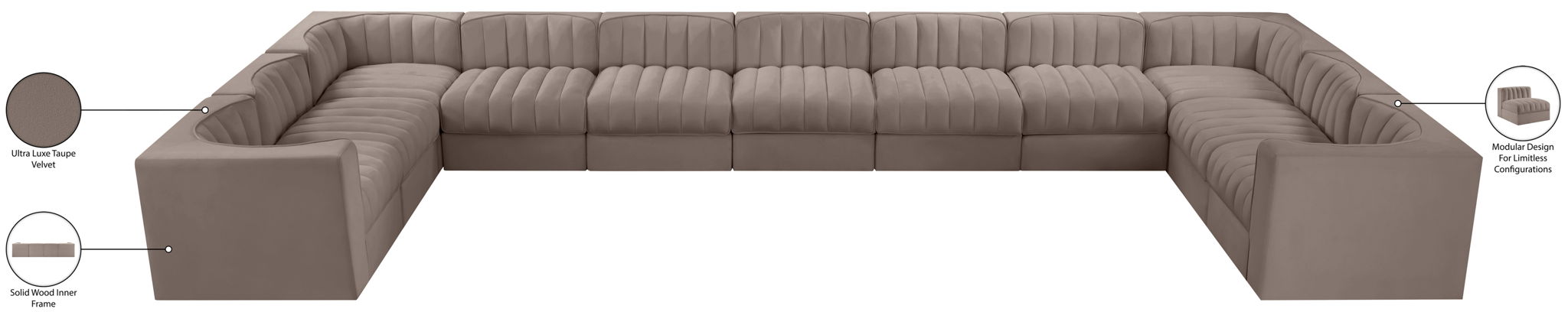 Rummi - Velvet Performance Fabric Upholstered 11 Piece Modular Sectional - Taupe