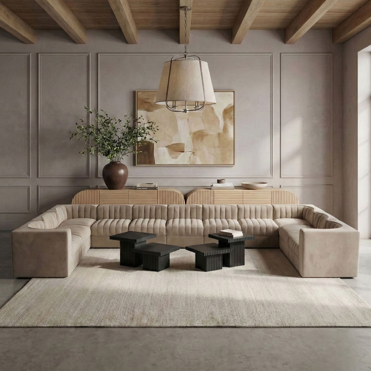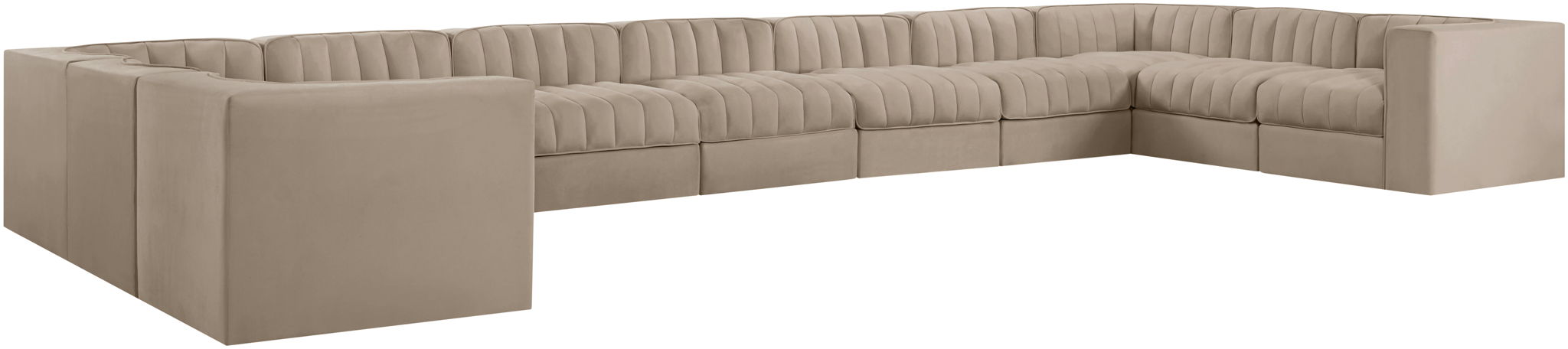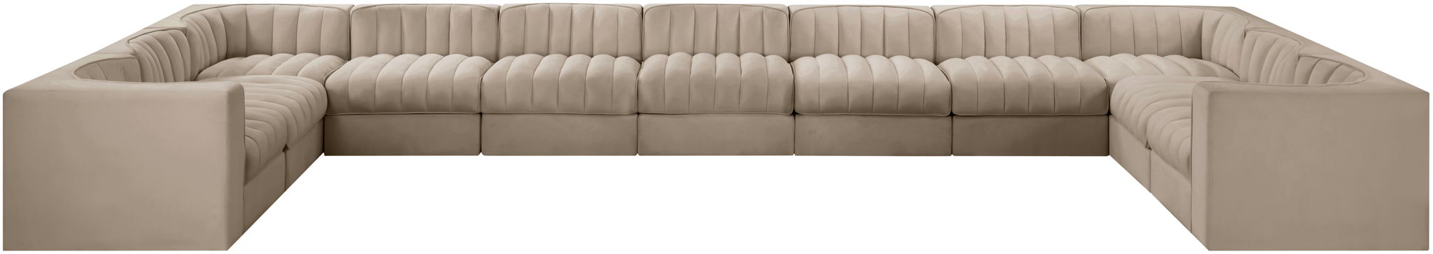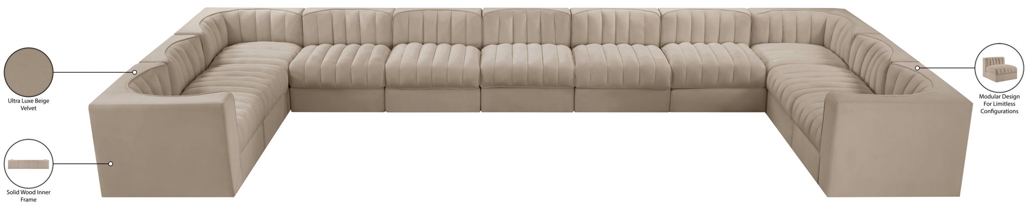 Rummi - Velvet Performance Fabric Upholstered 11 Piece Modular Sectional - Beige