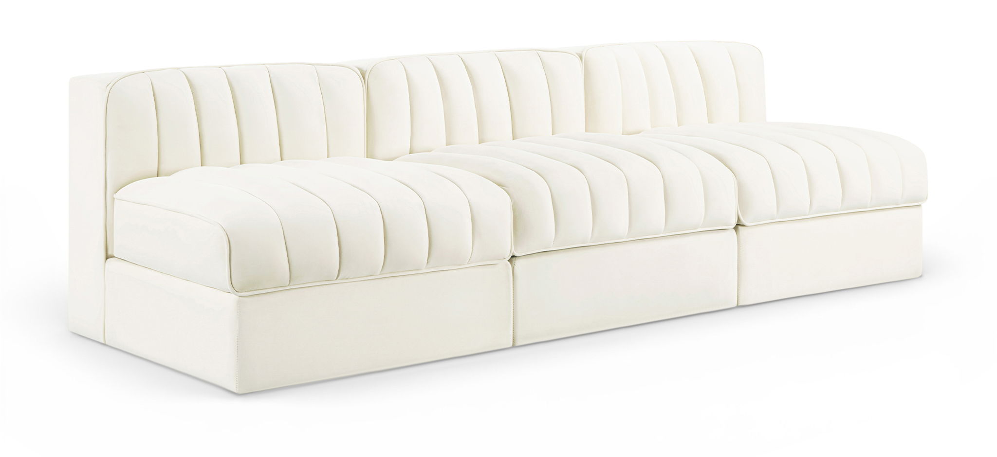 Rummi - Velvet Performance Fabric Upholstered 3 Piece Modular Armless Sofa - Cream