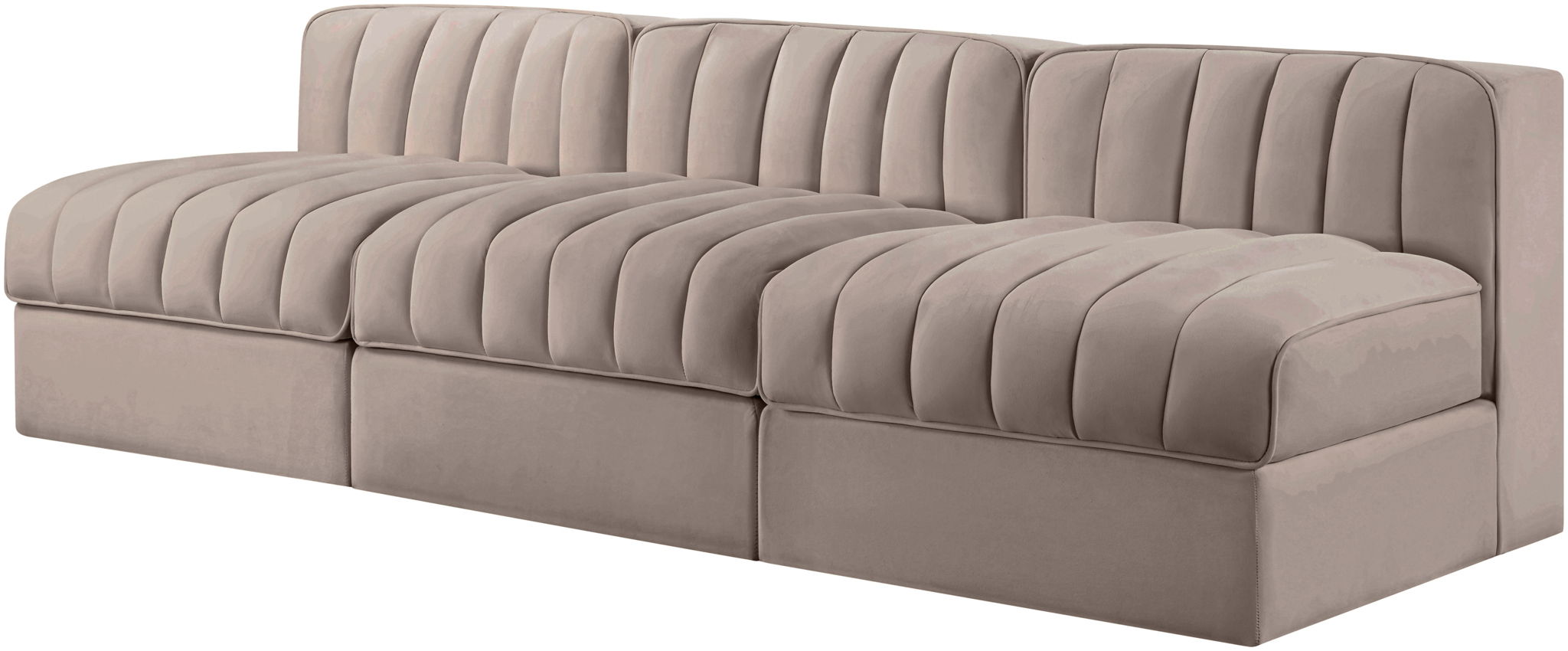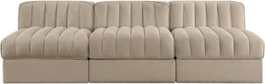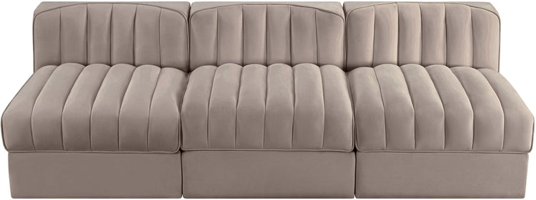 Rummi - Velvet Performance Fabric Upholstered 3 Piece Modular Armless Sofa - Beige