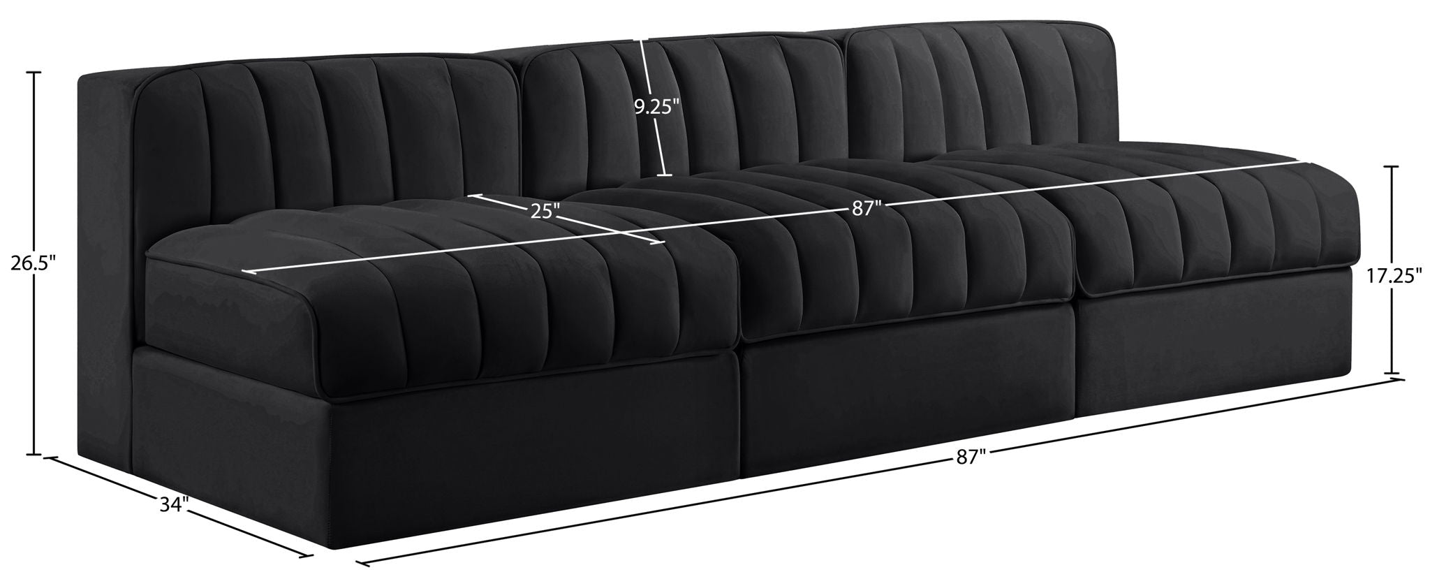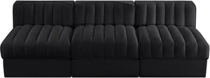 Rummi - Velvet Performance Fabric Upholstered 3 Piece Modular Armless Sofa - Black