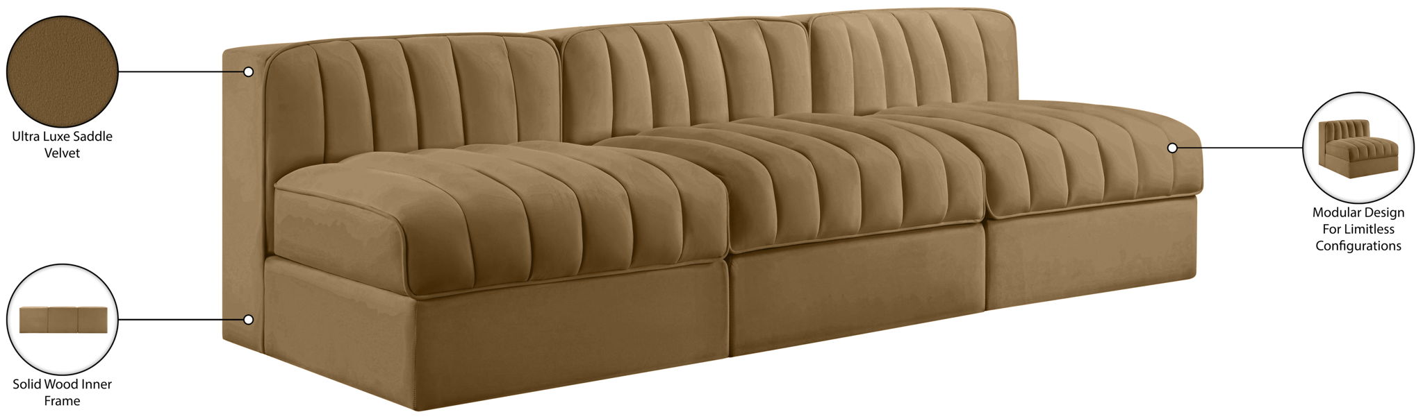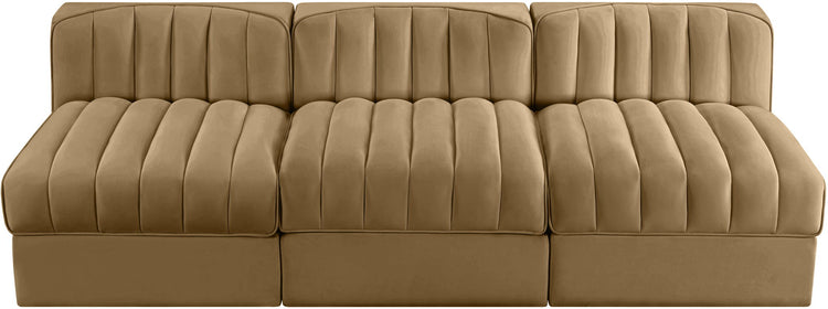 Rummi - Velvet Performance Fabric Upholstered 3 Piece Modular Armless Sofa - Saddle