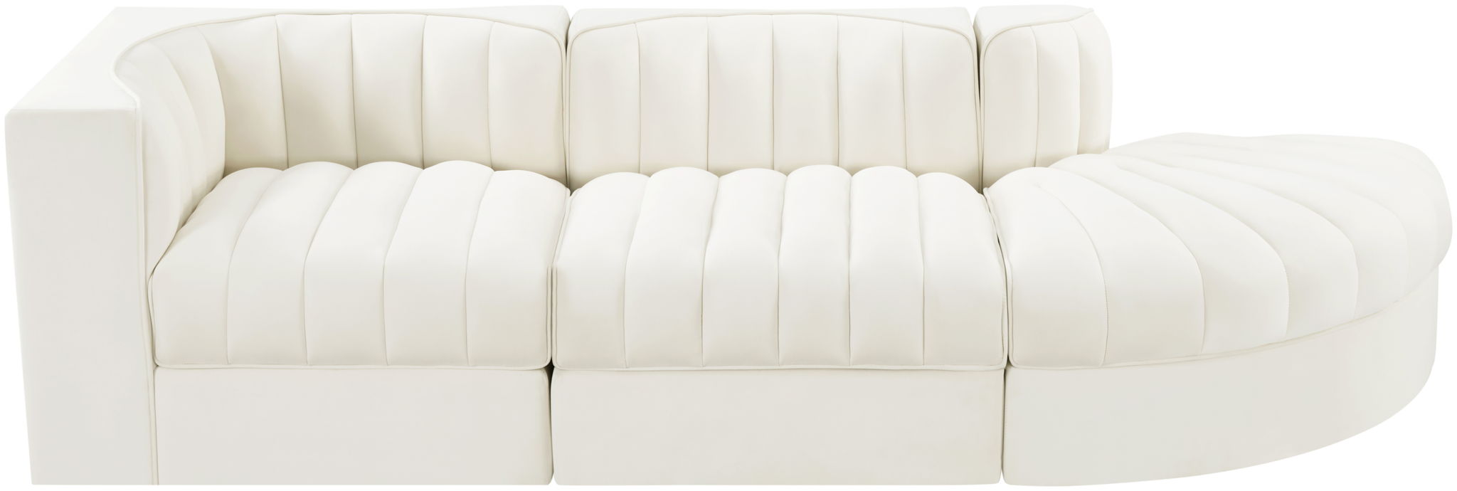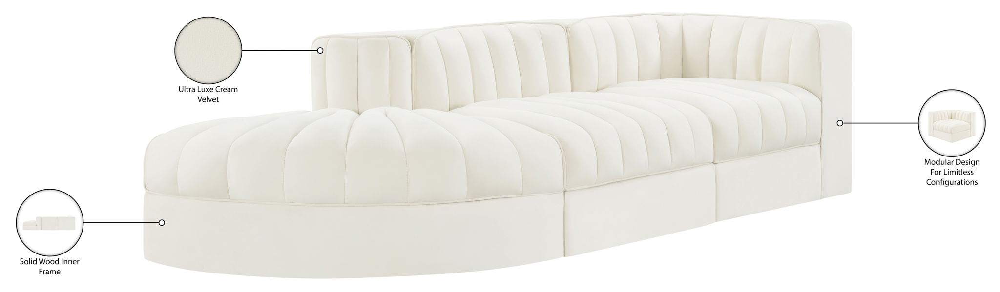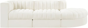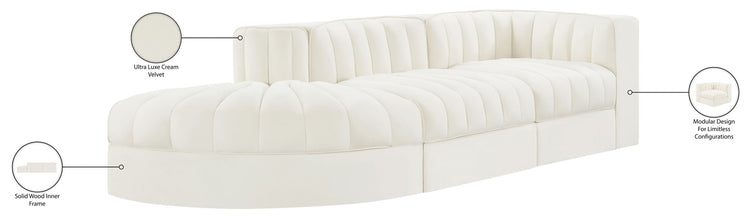 Rummi - Velvet Performance Fabric Upholstered 3 Piece Modular Sectional - Cream