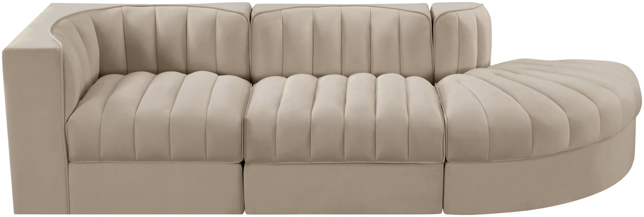 Rummi - Velvet Performance Fabric Upholstered 3 Piece Modular Sectional - Beige