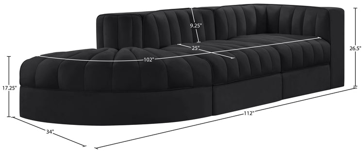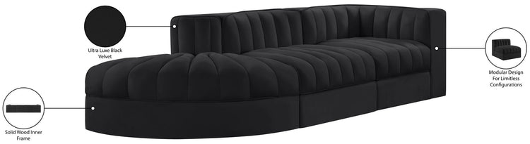 Rummi - Velvet Performance Fabric Upholstered 3 Piece Modular Sectional - Black