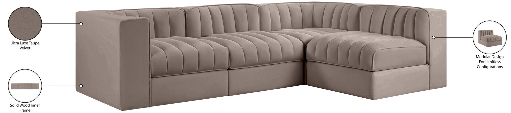 Rummi - Velvet Performance Fabric Upholstered 4 Piece Modular Sectional - Taupe