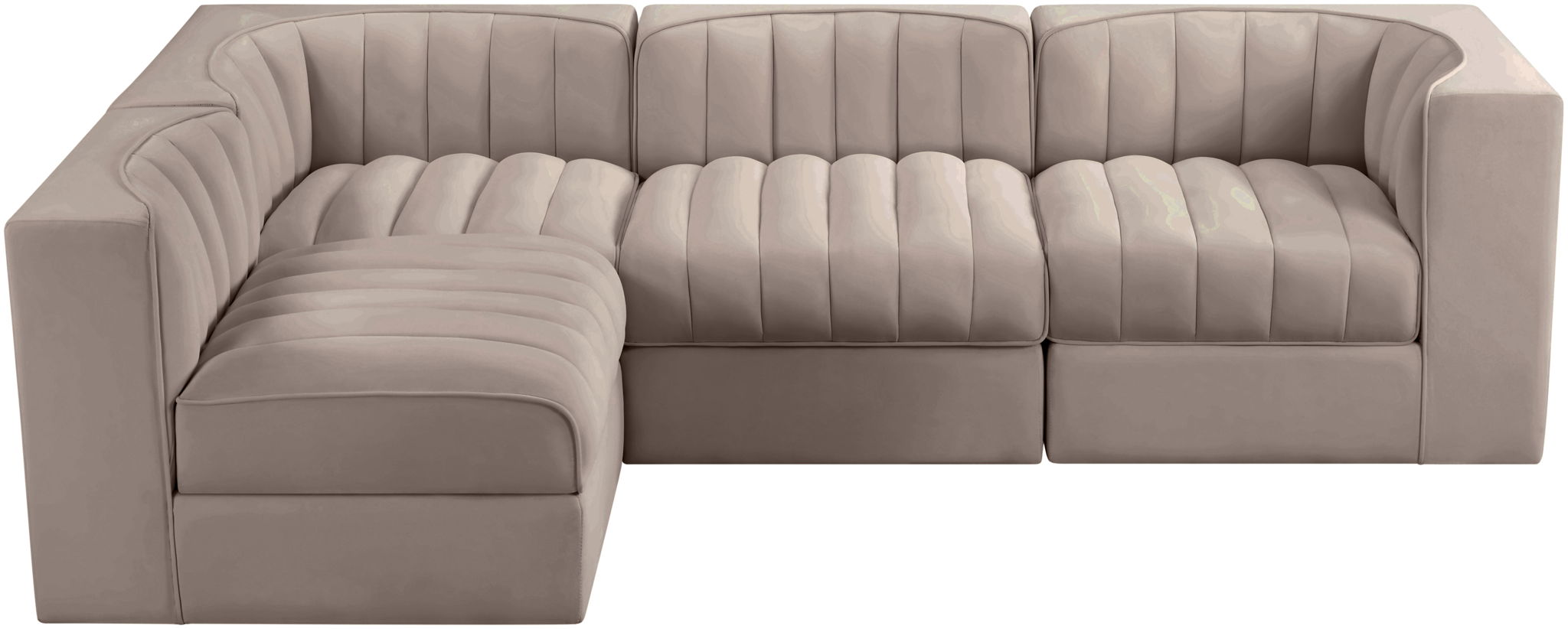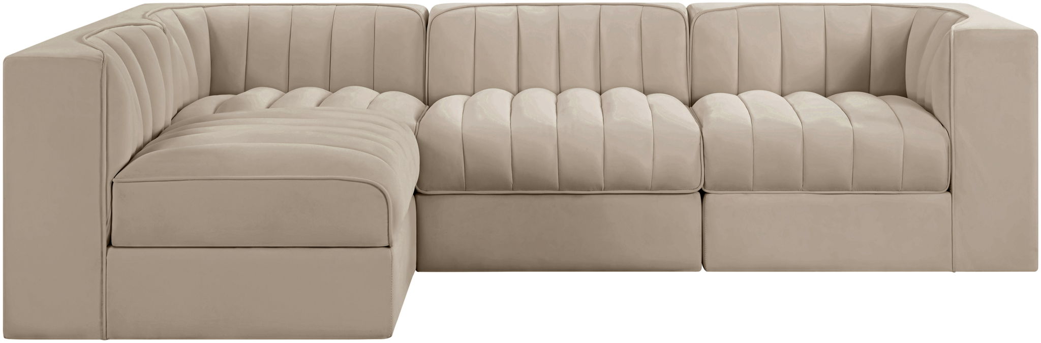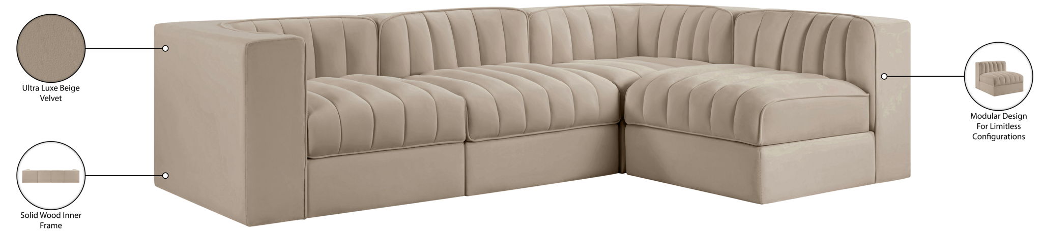 Rummi - Velvet Performance Fabric Upholstered 4 Piece Modular Sectional - Beige