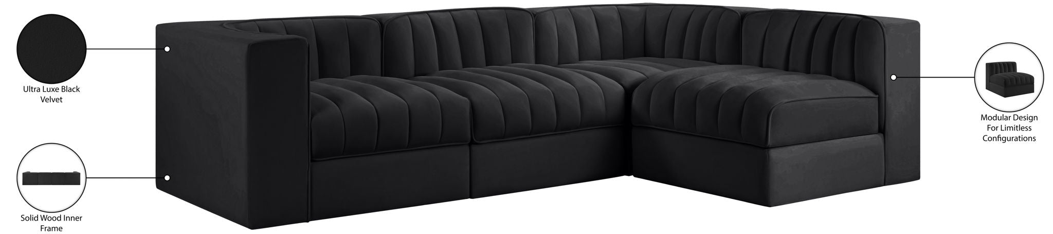 Rummi - Velvet Performance Fabric Upholstered 4 Piece Modular Sectional - Black