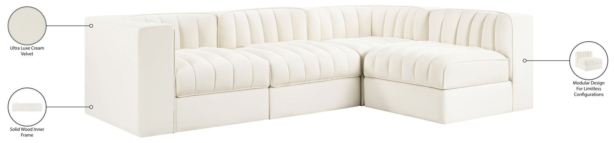 Rummi - Velvet Performance Fabric Upholstered 4 Piece Modular Sectional - Cream