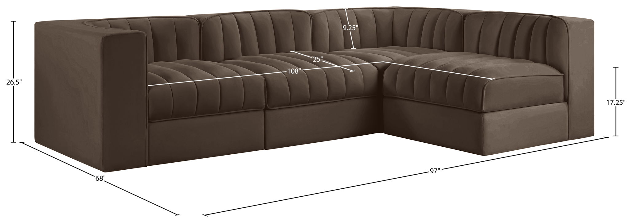 Rummi - Velvet Performance Fabric Upholstered 4 Piece Modular Sectional - Brown