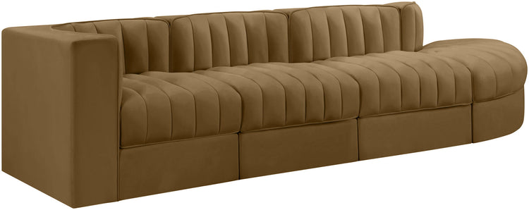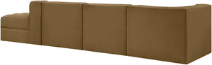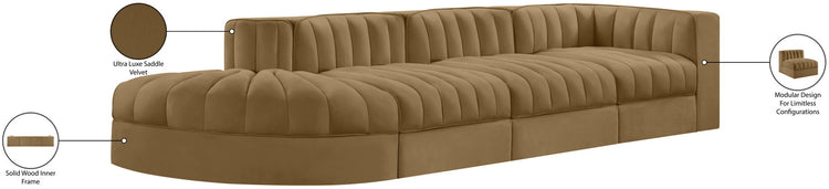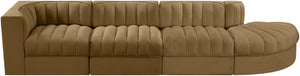 Rummi - Velvet Performance Fabric Upholstered 4 Piece Modular Sectional With Reverse Corner Chair - Saddle