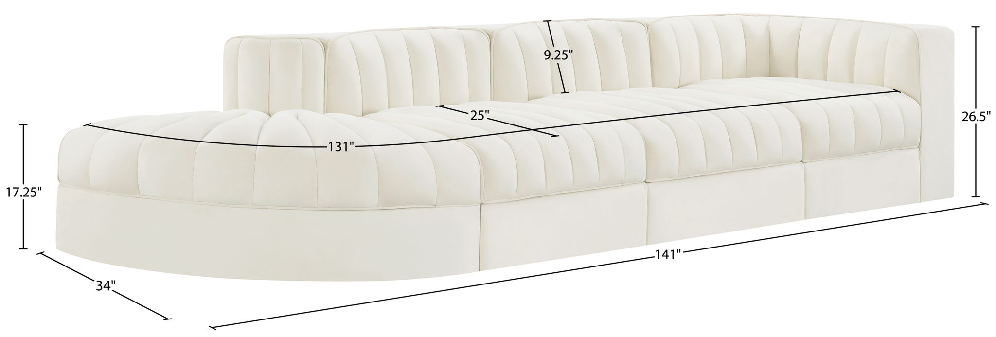 141.0"W x 34.0"D x 26.5"H - 208.0 lb